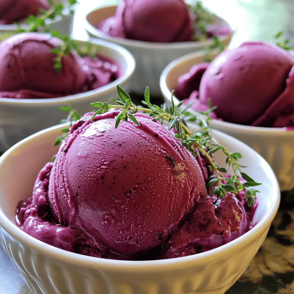 - 2 cups fresh blackberries - 2 tablespoons fresh thyme leaves (plus extra for garnish) - 1 cup water - 3/4 cup granulated sugar - 1 tablespoon lemon juice - A pinch of salt Gathering fresh ingredients is key for great flavor. The blackberries should be ripe and juicy. They bring sweetness and a lovely color to the sorbet. The fresh thyme adds a unique touch. It complements the blackberries and enhances the overall taste. Now, for the pantry staples, you need water to create the syrup. The sugar helps to balance the tartness of the blackberries. Lemon juice adds brightness, while salt boosts flavor. Each ingredient plays an important role in making this Blackberry Thyme Sorbet a refreshing treat. For the full recipe, see the instructions above. Start by mixing water, sugar, and thyme leaves in a saucepan. Use a medium heat to bring this mix to a gentle boil. Stir occasionally until the sugar dissolves. Then, take it off the heat. Let the thyme steep in the syrup for about 15 minutes. This step gives the syrup a fresh, herbal taste. Next, strain the syrup through a fine mesh sieve into a bowl. Discard the thyme leaves. You want the syrup to cool completely. In a blender, combine the fresh blackberries, the cooled syrup, lemon juice, and a pinch of salt. Blend until the mix is smooth and creamy. The blackberries and thyme create a unique flavor. Pour the blended mix into a shallow container. Cover it and place it in the freezer for about 2 hours. After 2 hours, take it out and stir the mixture with a fork to break any ice crystals. This step helps the sorbet stay smooth. Return it to the freezer and let it freeze for another 2-3 hours, or until firm. When ready to serve, let it sit at room temperature for a few minutes. This makes it easier to scoop into bowls. Garnish with fresh thyme leaves for a lovely touch. For the complete recipe, check out the Full Recipe. To get the best texture for your sorbet, timing is key. You want to freeze the mixture long enough to create a firm and smooth treat. Start checking the sorbet after about four hours in the freezer. If it seems too soft, let it sit longer. Stirring the sorbet during freezing helps break up any ice crystals. This keeps it creamy. After two hours, use a fork to stir the mixture. This simple step improves the final texture. Return it to the freezer and let it freeze for another two to three hours. You can make this sorbet even better by adding more fruits. Try mixing in raspberries or strawberries for a fun twist. They add a new layer of taste and color to your sorbet. Adjusting the sweetness is easy too. If you like it sweeter, add more sugar or honey. Start with a little, then taste. This way, you’ll find the right balance for your palate. For the full recipe, check out the details above. Enjoy crafting your unique blackberry thyme sorbet! {{image_2}} You can add other berries to your sorbet. Raspberries or strawberries mix well with blackberries. They bring a new taste and color to the dish. Blend them in when you make the base. This gives you a fruity twist. You can even try using mixed berries for a fun flavor combination. Looking to change things up? Try using basil or mint instead of thyme. Basil adds a sweet touch, while mint brings a fresh zing. Both herbs can change the taste profile. Just make sure to use fresh herbs for the best flavor. Blend them in as you would with thyme for a new experience. You can swap out granulated sugar for honey or agave syrup. Honey adds a rich, floral sweetness. Agave syrup is smoother and less intense. Adjust the amount based on your taste. Both options can create a unique sorbet experience. Just remember to keep the balance right to maintain the texture. To keep your blackberry thyme sorbet fresh, store it in an airtight container. This prevents freezer burn and keeps flavors intact. Make sure to cover the top with plastic wrap before sealing the lid. If you have a larger batch, consider using smaller containers for easy serving. Blackberry thyme sorbet can stay fresh in your freezer for up to two weeks. After that, it may lose its flavor and texture. To enjoy it at its best, try to eat it within this time frame. If you notice any ice crystals or a change in color, it's best to toss it. If your sorbet is too hard to scoop, let it sit at room temperature for about 5 to 10 minutes. This softens it enough to get a perfect scoop. You can also use a warm ice cream scoop to help. Just dip the scoop in warm water for a second before diving in! For the full recipe, check out the Blackberry Thyme Sorbet recipe. Yes, but adjust the blending time for a smoother texture. Frozen blackberries work well. They save time and reduce prep work. Just remember, they might not blend as easily as fresh ones. Give them a little extra time in the blender. Fresh thyme provides the best flavor; dried may alter taste. Fresh herbs bring a bright taste to the sorbet. Dried thyme can make the flavor less vibrant. If you can, always choose fresh thyme for this recipe. Yes, the method outlined does not require specialized equipment. You can use simple tools like a blender and a shallow container. This makes the sorbet process easy and fun. You can enjoy homemade sorbet without fancy gadgets. Add more sugar or a sweetener of choice to taste. If you prefer a sweeter treat, feel free to add sugar. Start with small amounts and taste as you go. This way, you can find your perfect sweetness level. Consider pairing it with desserts or serving as a palate cleanser. This sorbet can refresh your taste buds between courses. Try it alongside chocolate cake or fresh fruit. It also makes a lovely light dessert on its own. For the full recipe, check out the instructions above. This blog post outlined how to make a refreshing Blackberry Thyme Sorbet. You learned about fresh ingredients and pantry staples, and I provided clear steps for crafting your sorbet. Remember to adjust the freezing time for a great texture and consider flavor mix-