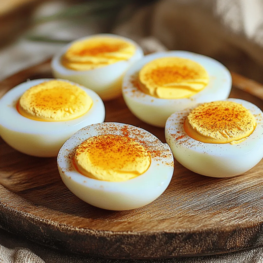 For a nice presentation, slice the hard-boiled eggs in half and place them on a platter. Sprinkle with salt and pepper for flavor. You can also add paprika for a burst of color and taste. These simple enhancements make your dish look and taste gourmet.