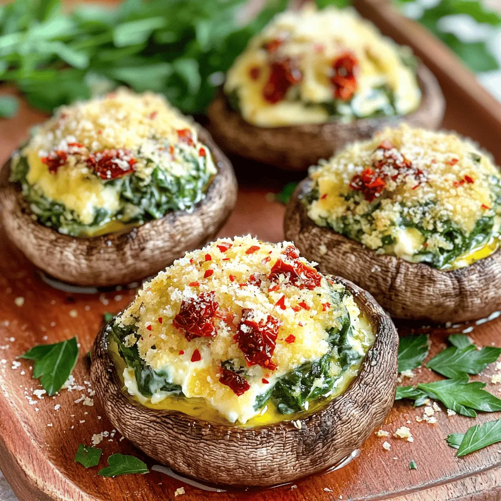 These stuffed mushrooms make a tasty appetizer. Serve them warm or at room temperature. They shine at parties and gatherings. Pair them with a fresh salad for a light meal. You can also serve them with crusty bread to soak up the flavors.