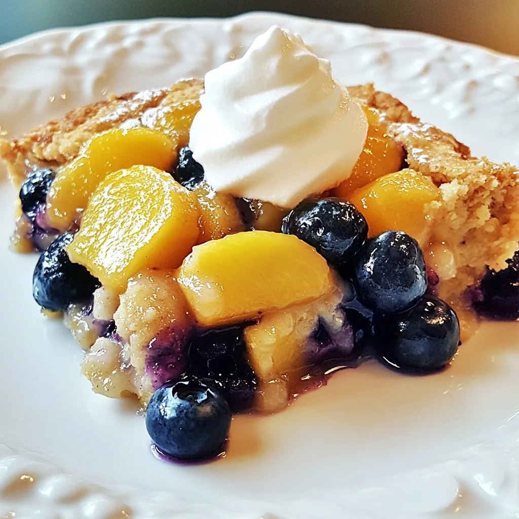 - 2 cups fresh blueberries - 2 cups fresh peaches, sliced (about 4 medium peaches) - 1 cup granulated sugar, divided - 1 tablespoon lemon juice - 1 teaspoon vanilla extract - 1 teaspoon ground cinnamon - 1 cup all-purpose flour - 1 teaspoon baking powder - 1/2 teaspoon salt - 1/2 cup milk - 1/4 cup unsalted butter, melted - 1 egg, beaten I love using fresh fruit in this recipe. Blueberries are sweet and juicy. Peaches add a nice, soft texture. Together, they create a great mix. You can divide the sugar to balance the sweetness. Lemon juice brightens the flavors. Vanilla adds warmth, while cinnamon gives a lovely spice. For the dry ingredients, flour is key. Baking powder helps it rise. Salt brings out the flavors. Mixing these well makes a nice base for the cobbler. Next, we have the wet ingredients. Milk keeps the batter moist. Butter adds richness. Beating the egg helps bind everything. This mix turns into a light, fluffy batter. Gather all these ingredients before you start. It makes cooking more fun. Plus, it helps you stay organized. Enjoy the process and the tasty results! {{ingredient_image_1}} Set your oven to 375Β°F (190Β°C). This step is key. Preheating helps the cobbler bake evenly. In a big bowl, mix together: - 2 cups fresh blueberries - 2 cups fresh peaches, sliced (about 4 medium peaches) - 1/2 cup granulated sugar - 1 tablespoon lemon juice - 1 teaspoon vanilla extract - 1 teaspoon ground cinnamon Gently toss these ingredients until the fruit is coated. Set the bowl aside for now. The mix will create a tasty filling. In another bowl, whisk together: - 1 cup all-purpose flour - 1 teaspoon baking powder - 1/2 teaspoon salt - 1/2 cup granulated sugar (the other half) In a small bowl, mix: - 1/4 cup unsalted butter, melted - 1/2 cup milk - 1 egg, beaten Now, pour the wet mix into the dry mix. Stir until just combined. It’s okay if there are a few lumps. Overmixing can ruin the batter's texture. Pour the fruit mixture into a greased 9x13-inch baking dish. Spread it evenly. Then, use a spoon to dollop the batter over the fruit. Leave some fruit exposed for a rustic look. This adds charm to your cobbler. Place the dish in the preheated oven. Bake for 35-40 minutes. Keep an eye on it. You want a golden brown top and bubbling fruit. When it's done, take it out of the oven. Allow the cobbler to cool for about 10 minutes before serving. This helps the flavors settle. Enjoy your warm cobbler plain or with a scoop of vanilla ice cream! To make a great cobbler, avoid overmixing the batter. Mixing too much makes it tough. You want a light, fluffy texture. Just stir until the ingredients blend, and leave some lumps. Ensure you distribute the fruit evenly in the baking dish. This step helps every bite taste great. When the fruit is spread out, it cooks better and gives a nice flavor in each spoonful. Serve the cobbler warm for the best taste. Top it with vanilla ice cream or whipped cream. The cold cream contrasts well with the warm fruit. You can also garnish with fresh fruit. A few extra blueberries or peach slices make it look inviting. You will need a few simple tools to make this cobbler: - 9x13-inch baking dish - Mixing bowls and whisk - Spatula or spoon for dolloping batter These tools help you mix, bake, and serve your cobbler with ease. Enjoy the process and the yummy results! Pro Tips Use Ripe Peaches: Ensure your peaches are ripe for the best flavor. Check for a sweet aroma and slight softness to the touch. Mixing the Batter: Be careful not to overmix the batter; it should remain slightly lumpy for a light, fluffy texture. Serving Temperature: For the best experience, serve the cobbler warm. The flavors of the fruit are more pronounced when heated. Experiment with Spices: Feel free to add a pinch of nutmeg or ginger to the fruit mixture for an extra layer of flavor. {{image_2}} You can change up the fruits in this cobbler. Use frozen blueberries or peaches if fresh ones are not available. They work well and taste great. You can also try other fruits like raspberries or strawberries. These fruits add a fun twist to the recipe. If you need a gluten-free version, simply substitute the all-purpose flour with a gluten-free blend. Many brands offer great options that taste just as good. Your cobbler will still be delicious and satisfying. To make this recipe dairy-free, replace the milk with almond or coconut milk. Both options give a nice flavor. You can also use dairy-free butter instead of regular butter. This way, everyone can enjoy the cobbler without worry. You can refrigerate your blueberry peach cobbler for up to 3 days. Use an airtight container to keep it fresh. This way, you can enjoy leftovers without losing flavor. To freeze your cobbler, cut it into portions. Wrap each piece tightly in plastic wrap. Then, place them in a freezer bag or container. When you want to eat it, remove a portion and let it thaw in the fridge overnight. Reheat it in the oven at 350Β°F (175Β°C) for about 15-20 minutes. Before storing your cobbler, let it cool completely. This helps keep moisture out. Cover the cobbler tightly to prevent it from drying out. Using aluminum foil or plastic wrap works well. Following these steps keeps your dessert tasty and ready for your next craving! Yes, frozen fruits can be used with slight adjustments. If you use frozen blueberries or peaches, do not thaw them fully. Just toss them in the bowl while still slightly frozen. This helps keep their shape and flavor. You may need to bake a few extra minutes to ensure they cook through. Look for a golden brown color and bubbling fruit. The fruit should be bubbling around the edges. A toothpick inserted into the batter should come out clean. This shows the batter has cooked properly. Yes, you can prepare ahead and bake when needed. Simply assemble the cobbler but do not bake it. Cover it and store it in the fridge for up to a day. When you are ready, bake it straight from the fridge. Just add a few extra minut