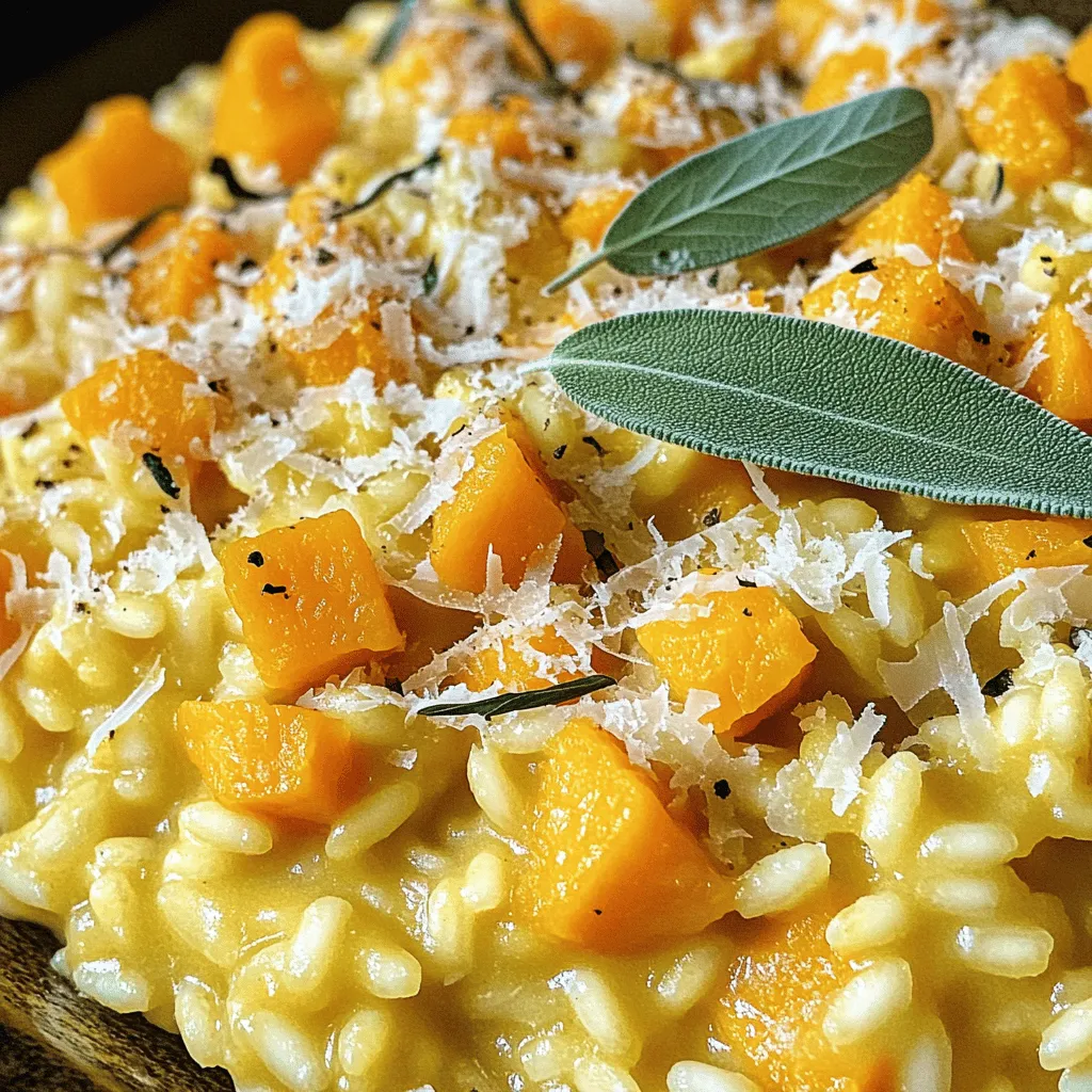 The butternut squash brings a lovely sweetness to the dish. Its creamy texture enhances the risotto. Arborio rice is key for that perfect creaminess. This short-grain rice absorbs flavors well. The vegetable broth adds warmth and depth, making the risotto rich. You can choose Parmesan cheese for a classic touch. If you prefer vegan, there are great plant-based options.