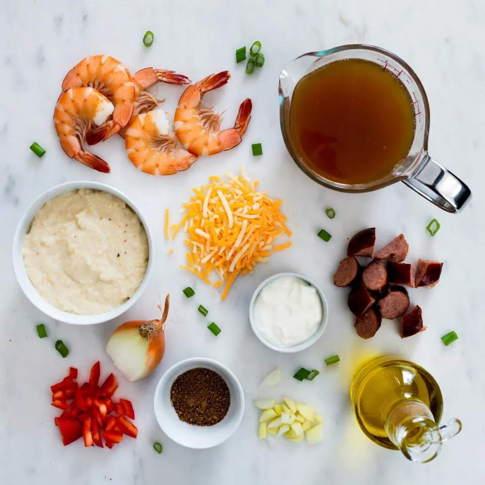These main ingredients create the base of this dish. The large shrimp are the star, bringing a sweet flavor. The grits act as a creamy canvas that soaks up all the delicious sauce. The andouille sausage adds a smoky punch. Each ingredient works together to make a hearty meal.
