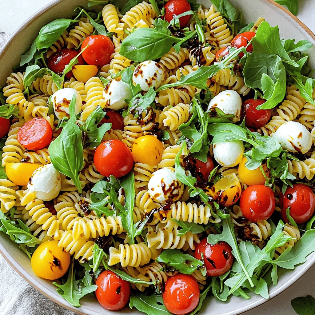 I love using fresh ingredients in Caprese Pasta Salad. The pasta gives you a nice base. Fusilli or rotini works well because it holds the dressing. Cherry tomatoes add a burst of flavor. They are sweet and juicy. Fresh mozzarella provides a creamy texture. It pairs perfectly with the tomatoes. Basil brings a lovely aroma and taste. You can chop it roughly, which adds a rustic feel.