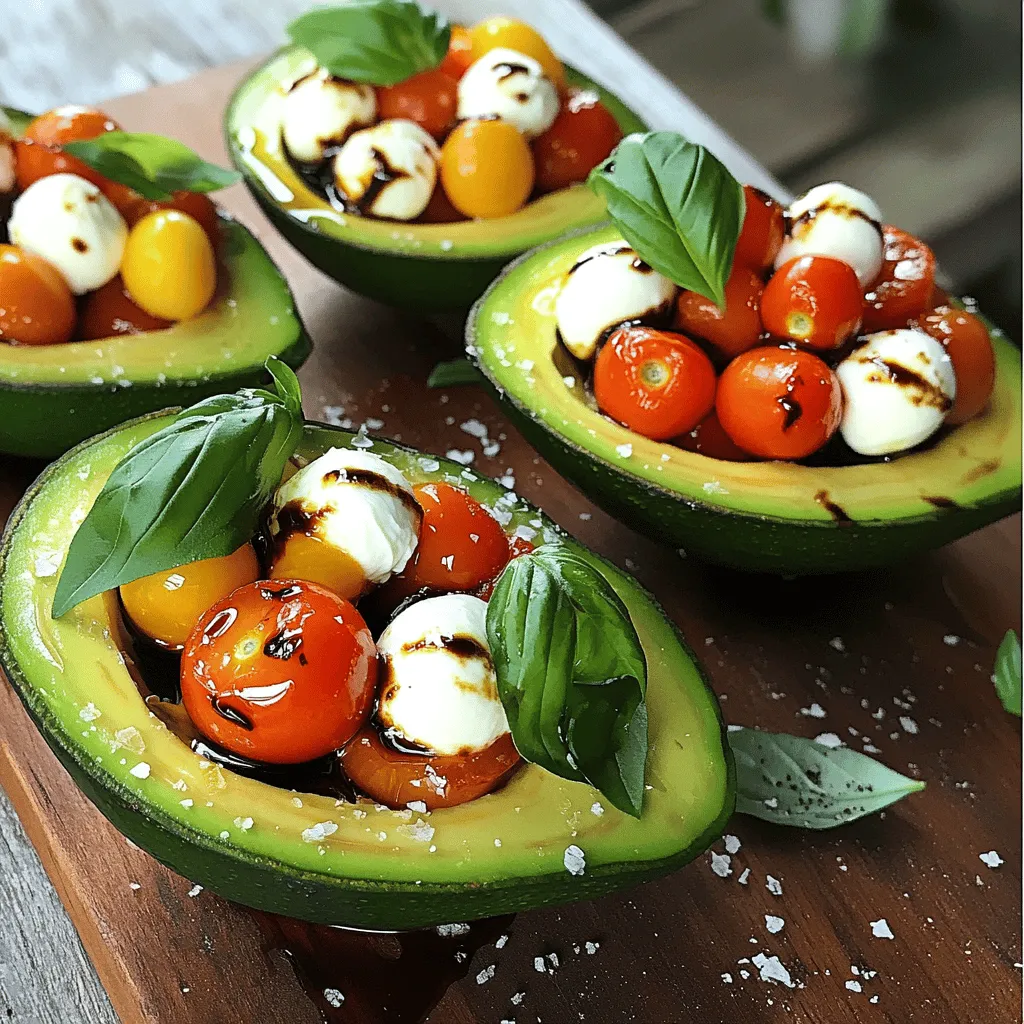 ![When you make Caprese Stuffed Avocados, gather these fresh and tasty ingredients: - Ripe avocados - Cherry tomatoes - Fresh mozzarella balls - Fresh basil leaves - Balsamic glaze - Olive oil - Salt and pepper These simple items bring bright flavors to your dish. Ripe avocados add creaminess, while cherry tomatoes offer a sweet burst. The mozzarella gives a nice texture, and fresh basil adds a lovely herbal note. Balsamic glaze elevates the dish with its tangy sweetness. Olive oil adds richness, and salt and pepper boost all the flavors. With these ingredients in hand, you're ready to create a fresh and flavorful delight. For the full recipe, check out the section on Step-by-Step Instructions. Start by cutting the avocados in half. Remove the pit carefully. Use a spoon to scoop out a bit of the flesh. This gives you extra room for the stuffing. Next, create the Caprese mixture. In a mixing bowl, add the halved cherry tomatoes and mozzarella balls. Then, toss in the torn basil leaves. Drizzle the olive oil and balsamic glaze over this mixture. Now, season with salt and pepper. Mix gently to combine all the flavors. Now it’s time to fill the avocado halves. Spoon the Caprese mixture evenly into each hollowed-out avocado half. Make sure each half is full and looks inviting. For the final touch, drizzle any remaining balsamic glaze over the stuffed avocados. This adds a nice shine and extra flavor. Serve the Caprese stuffed avocados right away. They taste best when fresh. If you prefer, chill them for a few minutes. This allows the flavors to meld together nicely. You can pair this dish with a light salad or crusty bread. It makes a great starter or side dish. Enjoy the fresh and vibrant flavors! For the complete recipe, refer to the Full Recipe. To make your Caprese stuffed avocados shine, start with ripe avocados. A ripe avocado feels slightly soft when you press it gently. If it feels hard, it’s not ready. If it's too soft, it may be overripe. Store avocados at room temperature until they ripen. Once ripe, keep them in the fridge to stay fresh longer. This keeps them from turning brown too fast. You can enhance the flavor of your Caprese stuffed avocados by adding a few extra ingredients. Consider adding some diced red onion for a sweet crunch. You could also try a sprinkle of chili flakes for heat. Balancing flavors is key. Make sure the salt and pepper complement the fresh ingredients. The balsamic glaze adds a sweet-tart punch, which pairs well with creamy avocado. Adjust the seasoning to suit your taste. For the full recipe and detailed steps, check the [Full Recipe]. {{image_2}} You can easily switch up the ingredients in Caprese stuffed avocados. For a vegan or dairy-free option, replace the mozzarella with plant-based cheese. This keeps the dish fresh, yet satisfying. You can also add extra veggies like bell peppers or zucchini for more flavor and crunch. Seasonal variations can bring new life to this dish. In summer, use fresh basil and ripe tomatoes. In fall, try arugula and roasted butternut squash. These changes keep it exciting and tasty all year long. Caprese stuffed avocados work well as both appetizers and main courses. Serve them as a light starter at a party or as a fun lunch. They are easy to share and look great on a plate. For a creative presentation, arrange the stuffed avocados on a colorful platter. Drizzle some balsamic glaze over the top for a striking look. You can also sprinkle fresh herbs around the avocados to add a pop of color. This makes the dish even more inviting. For the full recipe, check out the details above. To store leftover Caprese Stuffed Avocados, place them in an airtight container. This keeps them fresh. If you use a bowl, cover it tightly with plastic wrap. I recommend eating them within a day or two for the best taste. Avocados brown quickly due to oxidation. You can sprinkle a bit of lemon juice on the exposed flesh to slow this process. This helps maintain color and flavor. Can you freeze stuffed avocados? I do not recommend freezing them. The texture of avocado changes when frozen. It may turn mushy upon thawing. If you must freeze, try only the filling. Place it in a freezer-safe bag, removing as much air as possible. For thawing tips, move the filling to the fridge overnight. It will slowly get back to a nice texture. Once thawed, mix it well before serving. You can then assemble your fresh avocados. Enjoy the bright flavors without losing quality. To make Caprese stuffed avocados, start with ripe avocados. Cut each avocado in half and remove the pit. Scoop out a little flesh to create space. In a bowl, mix halved cherry tomatoes, mozzarella balls, and torn basil leaves. Drizzle olive oil and balsamic glaze over this mix. Season with salt and pepper, then stir gently. Spoon this mixture into the avocado halves. Drizzle with more balsamic glaze if desired. Serve right away or chill for a few minutes. You can find the full recipe above. Caprese stuffed avocados are nutritious and delicious. Avocados provide healthy fats that support heart health. They also offer fiber, which aids digestion. Tomatoes are full of vitamins and antioxidants, especially vitamin C. Fresh mozzarella adds protein to keep you full. Basil brings flavor and has anti-inflammatory properties. This dish is low in carbs and high in nutrients. Overall, it’s a balanced choice for a snack or light meal. You can prepare the filling in advance, but not the avocados. The avocado flesh can brown quickly when exposed to air. If you want to prepare ahead, mix the tomatoes, mozzarella, and basil. Store this mixture in the fridge. When ready to serve, cut and scoop the avocados. Fill them with the prepared mixture right before eating. This keeps the avocados fresh and tasty. This blog post detailed a simple and delicious recipe for Caprese Stuffed Avocados. You learned about the key ingredients, easy preparation steps, and serving tips. Selecting ripe avocados and enhancing 