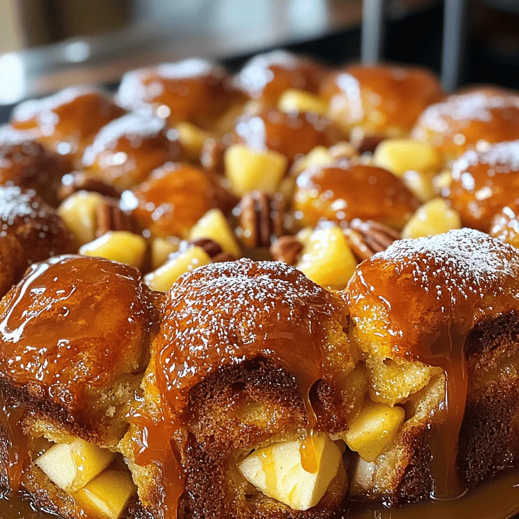 These ingredients make this treat sweet and fun to eat. The biscuit dough serves as the base. The sugar and cinnamon create a tasty coating. The apples add a fresh crunch, while the caramel sauce brings a rich flavor. If you like nuts, toss in some pecans or walnuts for extra texture. Don’t forget the powdered sugar for a lovely finish!This recipe is perfect for gatherings or cozy nights in. Enjoy the process of making this delightful dessert!