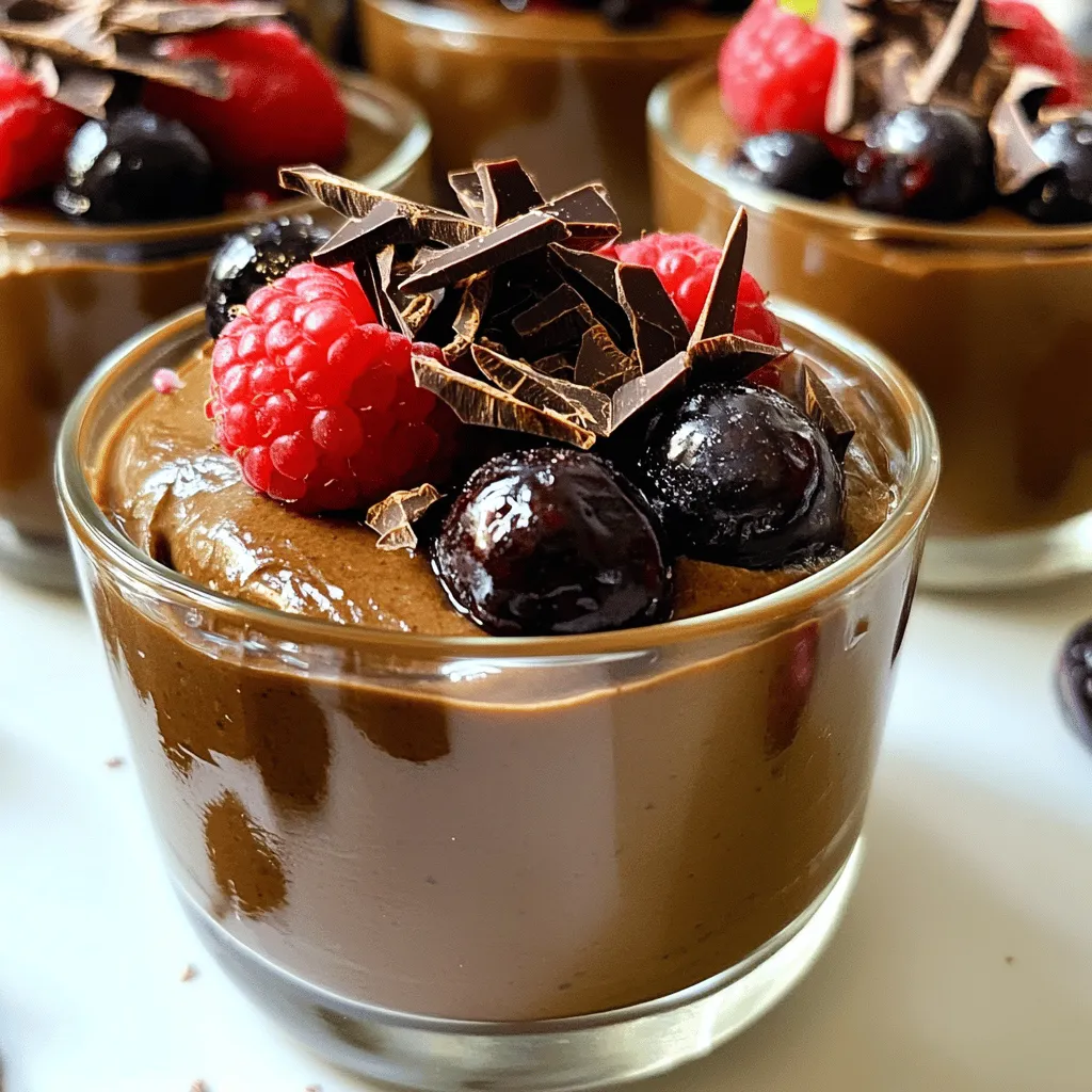 Transfer the mousse into dessert cups or bowls. Chill in the fridge for at least 30 minutes. This helps the flavors meld together. Before serving, consider topping it with shaved dark chocolate, fresh berries, or chopped nuts. These add great texture and look beautiful. Enjoy this treat knowing it’s both tasty and healthy!