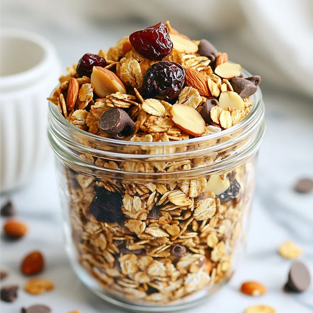 Want to make it gluten-free? Use gluten-free rolled oats instead of regular ones. This simple change makes the granola safe for those with gluten issues. For vegan options, replace the honey or maple syrup with agave nectar. Also, ensure your chocolate chips are dairy-free. These swaps keep your snack tasty while meeting dietary needs.