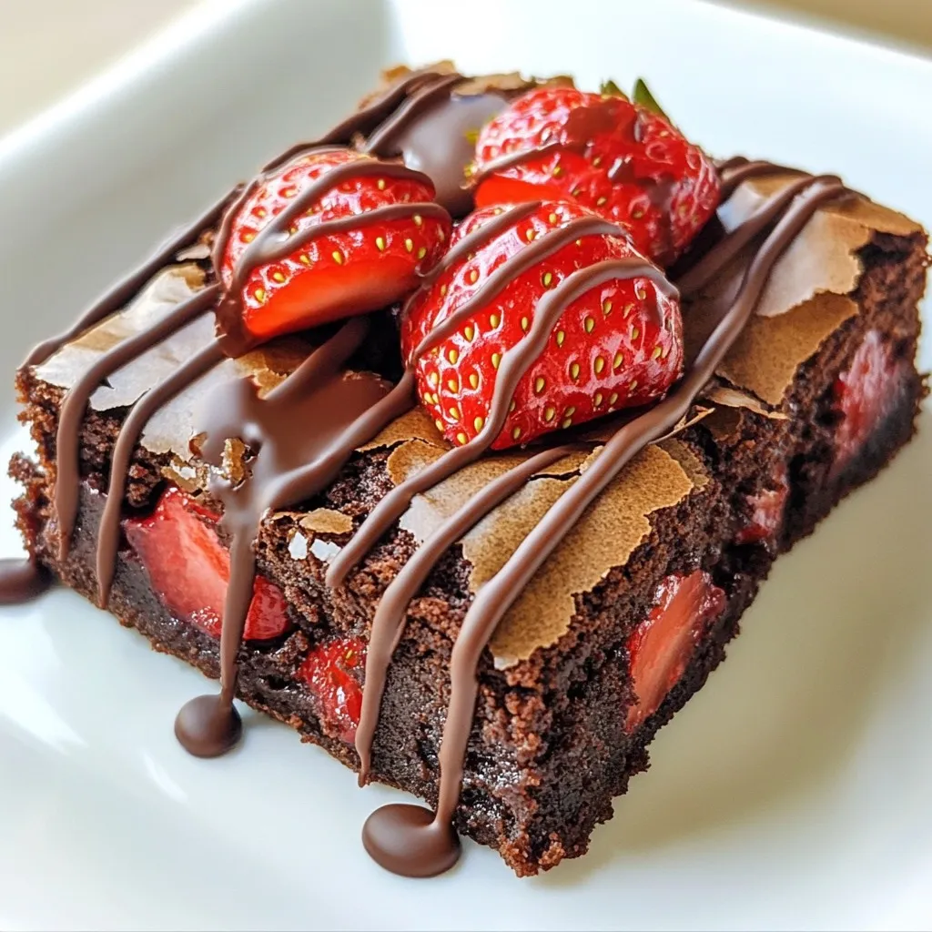 - 1 cup unsalted butter, melted - 2 cups granulated sugar - 4 large eggs - 1 teaspoon vanilla extract - 1 cup all-purpose flour - 1 cup cocoa powder - ½ teaspoon baking powder - ½ teaspoon salt - 1 cup fresh strawberries, hulled and halved - 1 cup semi-sweet chocolate chips - 1 tablespoon coconut oil When you make Chocolate Covered Strawberry Brownies, you need the best ingredients. Each one adds flavor and texture to your treat. First, unsalted butter is key. It gives the brownies a rich, creamy taste. Melt it well before mixing. Next, granulated sugar is your sweetener. It helps the brownies rise and gives them their sweet taste. Use two cups for a perfect balance. Eggs are the magic ingredient. They bind the mix and create a soft, chewy texture. Use four large eggs for the best result. Vanilla extract adds depth. A teaspoon brings all the flavors together. It makes the brownies taste more complex. For the base, you need all-purpose flour. One cup helps create that classic brownie texture. Cocoa powder is where the chocolate magic happens. One cup provides a deep, rich flavor. Baking powder helps the brownies rise. Just half a teaspoon will do. Salt enhances the sweetness, so don’t skip the half teaspoon. Fresh strawberries bring a fruity twist. Use one cup, hulled and halved, for bursts of flavor. Semi-sweet chocolate chips make the topping even better. One cup melts nicely on top of the brownies. Lastly, coconut oil is for melting the chocolate. One tablespoon will help it become smooth and shiny. With these ingredients, you create a dessert that everyone will love! {{ingredient_image_1}} Start by preheating your oven to 350°F (175°C). This step helps the brownies bake evenly. Next, take a 9x13 inch baking pan. Grease it well with some butter, or line it with parchment paper. This makes it easy to lift the brownies out later. In a large mixing bowl, pour in 1 cup of melted unsalted butter. Add 2 cups of granulated sugar. Use a whisk to mix them until smooth. This blend should look shiny and creamy. Now, crack in 4 large eggs, one at a time. Mix well after each egg. Finally, stir in 1 teaspoon of vanilla extract. This adds a nice flavor. Next, take another bowl. Sift in 1 cup of all-purpose flour, 1 cup of cocoa powder, ½ teaspoon of baking powder, and ½ teaspoon of salt. Mixing these dry ingredients helps avoid lumps. Gently fold the dry mix into the wet mix. Be careful not to overmix; you want it just combined. Now it’s time to build the layers. Pour half of the brownie batter into your prepared pan. Smooth it out evenly. Take 1 cup of fresh strawberries, hulled and halved. Arrange these strawberries over the batter. Press them down just a bit. Then, pour the rest of the brownie batter over the strawberries. Spread it gently to cover them completely. Place the pan in the oven. Bake for 30 to 35 minutes. You will know they are done when a toothpick inserted in the center comes out with a few moist crumbs. Remember, you want some crumbs, not wet batter. While the brownies bake, let’s prepare the chocolate coating. In a microwave-safe bowl, add 1 cup of semi-sweet chocolate chips and 1 tablespoon of coconut oil. Microwave the bowl in 30-second bursts. Stir after each round until the chocolate is melted and smooth. After baking, cool the brownies in the pan for about 15 minutes. Then, move them to a wire rack to cool completely. Once cool, pour the melted chocolate over the brownies. Let it drizzle down the sides. You can spread it evenly or let it swirl for a fancy look. Allow the chocolate to set for about 30 minutes at room temp, or refrigerate for a quicker set. Finally, slice into squares and serve. Enjoy your delicious treat! To keep your brownies soft, avoid overmixing. When you add the dry ingredients, fold them in gently. Use a spatula or wooden spoon to mix until the dry and wet ingredients just come together. Overmixing makes brownies tough. Remember, a few lumps are okay! For the best chocolate, use semi-sweet chocolate chips. They melt smoothly and give a rich flavor. If you want a sweeter taste, you can use milk chocolate. Always combine chocolate chips with a bit of coconut oil. This helps the chocolate melt evenly and gives it a nice shine. To spread the strawberries evenly, slice them in half and arrange them on the first layer of brownie batter. Press them down slightly so they stay in place. When you pour the second layer of batter, try to cover the strawberries fully. This method ensures every bite has a taste of strawberry and brownie. Pro Tips Use Room Temperature Eggs: Allow your eggs to sit at room temperature for about 30 minutes before using them. This helps them incorporate better into the batter, resulting in a lighter texture. Don’t Overmix the Batter: When combining wet and dry ingredients, mix just until you see no dry flour. Overmixing can lead to dense brownies. Use Quality Chocolate: For the best flavor, use high-quality semi-sweet chocolate chips in the brownie batter and for melting. It makes a significant difference in taste. Let Brownies Cool Completely: Allow the brownies to cool completely before slicing. This helps them set and makes for cleaner cuts. {{image_2}} You can make these brownies even more fun. Add nuts like walnuts or pecans. They add a nice crunch. Chop them up and mix them into the batter. You can also use other fruits. Try raspberries or blueberries for a twist on flavor. Just keep the fruit fresh and cut it into small pieces. This adds taste and texture to your brownies. If you want gluten-free brownies, you can switch the flour. Use a gluten-free flour blend instead of all-purpose flour. Make sure it has a good mix of starches and fibers. This helps keep the brownies soft and chewy. You can also check for gluten-free baking powder. This way, you can enjoy these treats without worry. Want to make these brownies vegan? You can do that too! Replace the eggs with flax eggs. Mix one tablespoon of flaxseed meal with three