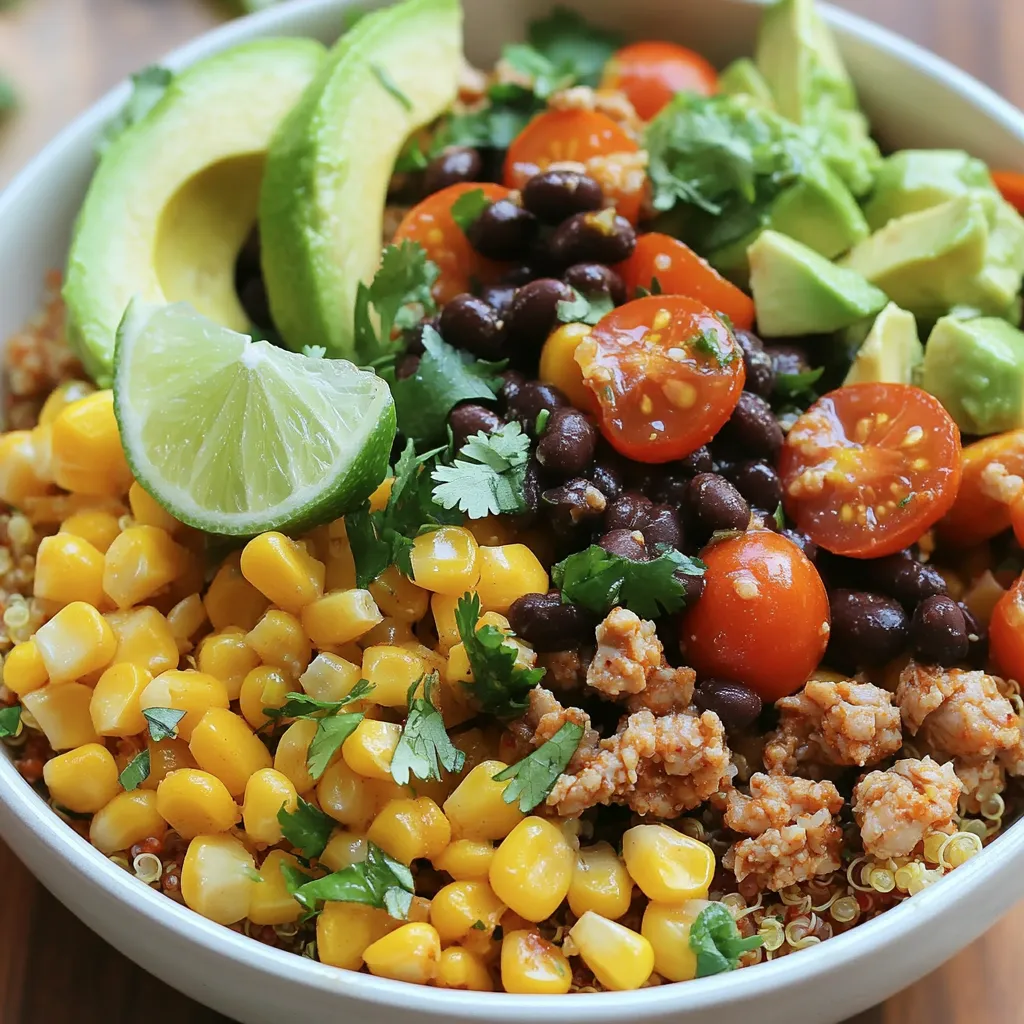 For a fun presentation, serve in a large bowl. Layer the ingredients for a colorful display. Start with quinoa or rice, then add the turkey. Top with black beans, corn, and cherry tomatoes. Donโt forget the diced avocado and cilantro. For added creaminess, include sour cream or shredded cheese. Serve with lime wedges for a fresh squeeze right before eating.