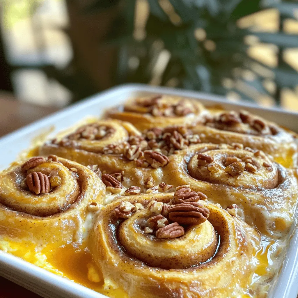 ![- 2 cans (12.4 oz each) refrigerated cinnamon rolls with icing - 4 large eggs - 1 cup milk - 1 teaspoon vanilla extract - 1 teaspoon ground cinnamon - 1/2 teaspoon nutmeg - 1/2 cup maple syrup - Optional Ingredients: chopped pecans or walnuts, raisins To make my cinnamon roll casserole, I use simple ingredients. Each item plays a key role in creating that warm, gooey delight. First, the refrigerated cinnamon rolls form the base. Their sweet, soft texture is a must. Next, I add eggs. They bring richness and help bind everything together. Milk adds creaminess, while vanilla extract gives a sweet aroma. Ground cinnamon and nutmeg enhance the classic cinnamon flavor. They make the dish smell like a bakery! Maple syrup adds sweetness and a hint of caramel. You can also sprinkle in some chopped nuts or raisins for extra flavor and crunch. These are optional but highly recommended. With these ingredients ready, you can create a dish that's quick and satisfying. Just follow the recipe, and you'll have a delightful cinnamon roll casserole in no time! - Preheat the oven to 350°F (175°C). - Grease the baking dish. To start, I set my oven to 350°F. This temperature helps the casserole cook evenly. Next, I grease my 9x13-inch baking dish with non-stick spray or butter. This step is key to keep the casserole from sticking. - Cut the cinnamon rolls and place them in the dish. - Whisk egg mixture and pour it over the rolls. I open the cans of cinnamon rolls and cut each roll into quarters. I spread these pieces in the greased dish. This makes sure each bite has that sweet flavor. In a mixing bowl, I whisk together 4 large eggs, 1 cup of milk, 1 teaspoon of vanilla extract, 1 teaspoon of ground cinnamon, and 1/2 teaspoon of nutmeg. This mixture brings rich taste and creaminess. After that, I pour it over the cinnamon roll pieces, soaking each one well. - Bake for 25-30 minutes. - Drizzle with icing after baking. Now, I bake the casserole for 25 to 30 minutes. I look for a puffed and golden brown top. While it bakes, I warm the icing from the cinnamon rolls. Once the casserole is done, I let it cool for about 5 minutes. Then, I drizzle the warm icing over the top. This adds a sweet finish to an already delightful dish. You can find the full recipe at [Full Recipe]. To get the perfect texture for your cinnamon roll casserole, focus on soaking. Make sure each piece of cinnamon roll is well-covered by the egg mixture. This helps achieve a fluffy, moist center. If you want a crispier top, bake it for an extra 5 minutes. Keep an eye on it, so it doesn't burn. Garnishing is key. I enjoy topping my casserole with extra chopped nuts or a sprinkle of powdered sugar. It adds a nice crunch and sweetness. You can also serve it with fresh fruit on the side. Slices of strawberries or bananas pair well. For drinks, try serving it with a warm cup of coffee or hot cocoa. If you need a dairy-free option, almond milk or oat milk works great in place of regular milk. You can still enjoy the same rich flavor. For a nut-free recipe, simply skip the chopped pecans or walnuts. You can also replace them with seeds like sunflower seeds for added crunch without the nuts. {{image_2}} You can make this dish even more fun! Try adding chocolate chips or fresh fruit. Chocolate chips give a sweet twist. Fruits like blueberries or strawberries add a fresh taste. You can also mix in different spices. Nutmeg, ginger, or cardamom can change the flavor. Just be sure to keep the balance. Too much spice can overpower the dish. Want a healthier option? Use whole grain cinnamon rolls. They add fiber and nutrients. You can also lower the sugar. Use less maple syrup or choose a sugar substitute. This makes it lighter but still tasty. If you need a gluten-free version, use gluten-free cinnamon rolls. Many brands offer this option now. For a vegan twist, swap eggs with flaxseed meal and use plant milk. This keeps it delicious while meeting dietary needs. These changes help everyone enjoy this treat. I hope these ideas inspire your cooking! For the full recipe, check out [Full Recipe]. To store leftovers, let the casserole cool. Place it in an airtight container. You can keep it in the fridge for up to 3 days. This helps keep the flavors fresh and tasty. For freezing, cut the casserole into portions. Wrap each piece in plastic wrap and then foil. This keeps it safe from freezer burn. You can freeze it for up to 2 months. When you're ready to eat, thaw it in the fridge overnight. Reheat in the oven at 350°F (175°C) until warm. You can also use the microwave, but be careful not to dry it out. Enjoy your Cinnamon Roll Casserole Delight! For the full recipe, check out the details above. How long can I store Cinnamon Roll Casserole? You can store Cinnamon Roll Casserole in the fridge for up to three days. Make sure to keep it in an airtight container to keep it fresh. Can I make this recipe ahead of time? Yes, you can prepare it the night before. Just cover the dish and place it in the fridge. In the morning, bake it fresh for breakfast. What is the best way to reheat leftovers? To reheat, place the casserole in the microwave for about one to two minutes. You can also warm it in the oven at 350°F for about 10-15 minutes. Can I use homemade cinnamon rolls instead? Yes! Homemade cinnamon rolls work great in this recipe. Just cut them into small pieces like the store-bought ones. Is it possible to make this dish without eggs? Absolutely! You can use a flax egg or applesauce as a substitute for eggs. This makes it vegan-friendly if you need that option. For the full recipe, check out the details above. This recipe for Cinnamon Roll Casserole is simple and fun. We covered the ingredients, from cinnamon rolls to egg mixtures, ensuring flavor and texture. I shared helpful baking tips and suggested garnishes. Variations allow you to explore flavors while keeping it healthy. With storage and freezing guidelines, you can enjoy leftovers too. Try this dish fo