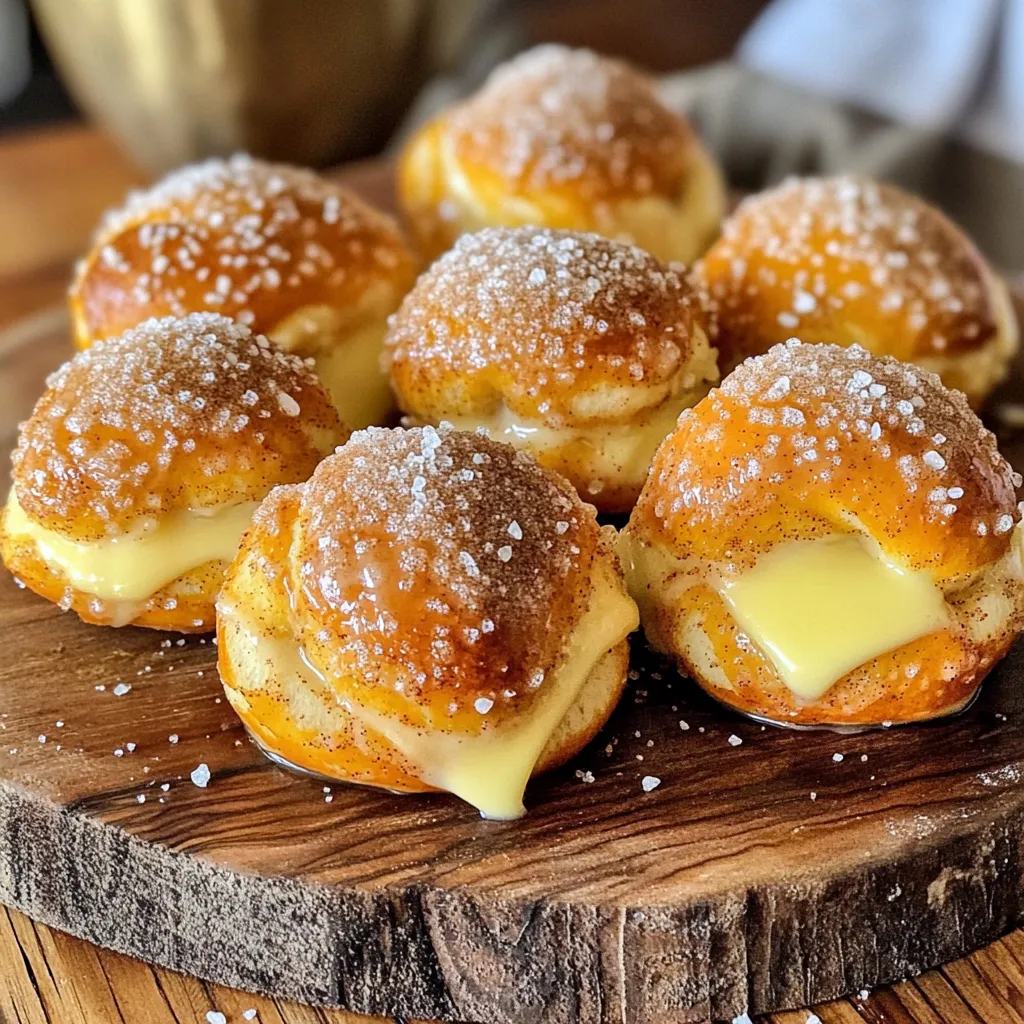 Before baking, brush each pretzel bite with melted butter. In a bowl, mix 1 cup of granulated sugar with 2 tablespoons of ground cinnamon. Generously sprinkle this mixture over the pretzel bites. Then, add a sprinkle of coarse sea salt for extra flavor.
