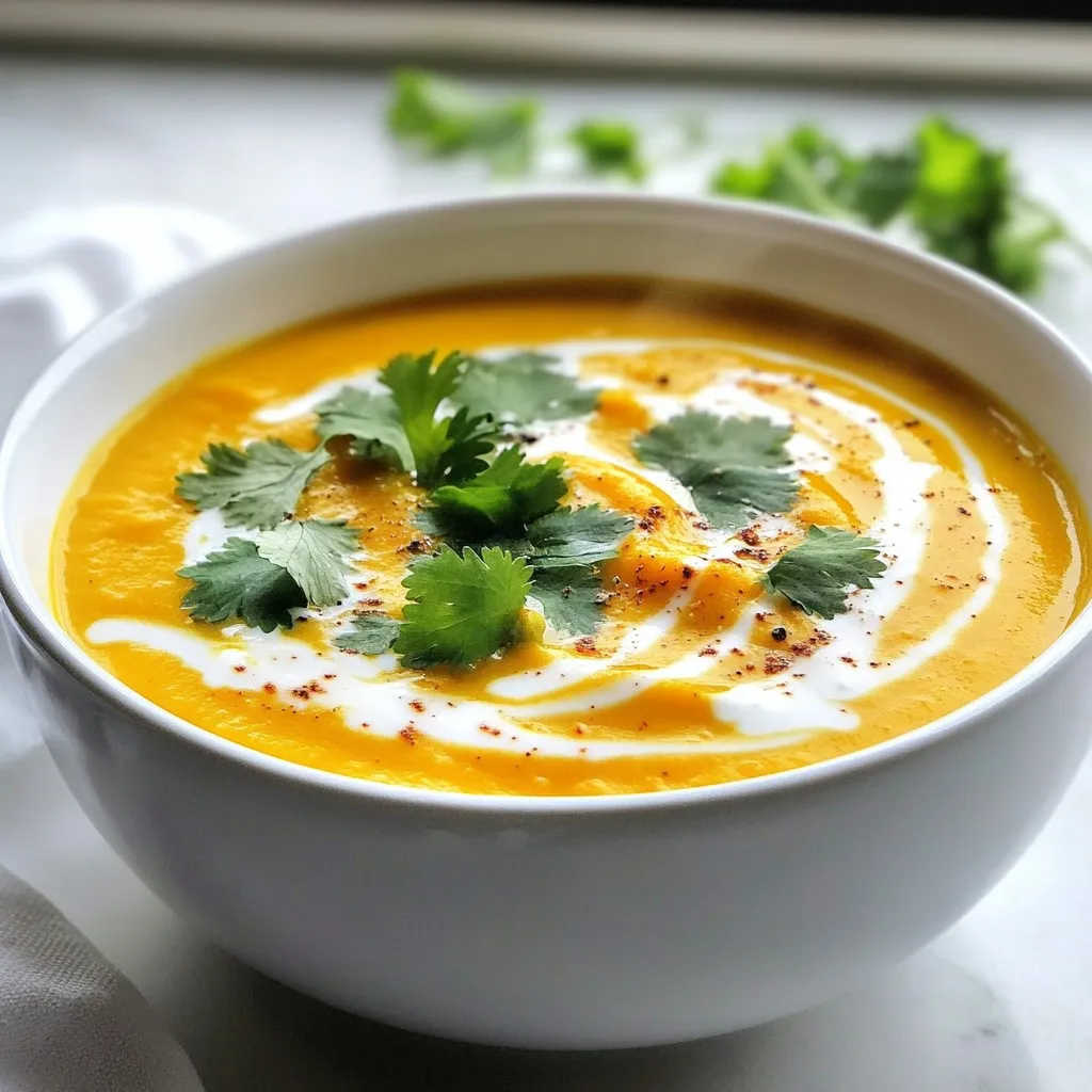 Garnishes can elevate your soup. Fresh cilantro adds a burst of freshness. It contrasts nicely with the creamy soup. You can also add a swirl of coconut milk on top. This makes it look beautiful. Crushed red pepper flakes give a hint of heat. You can even add toasted pumpkin seeds for a crunchy texture.
