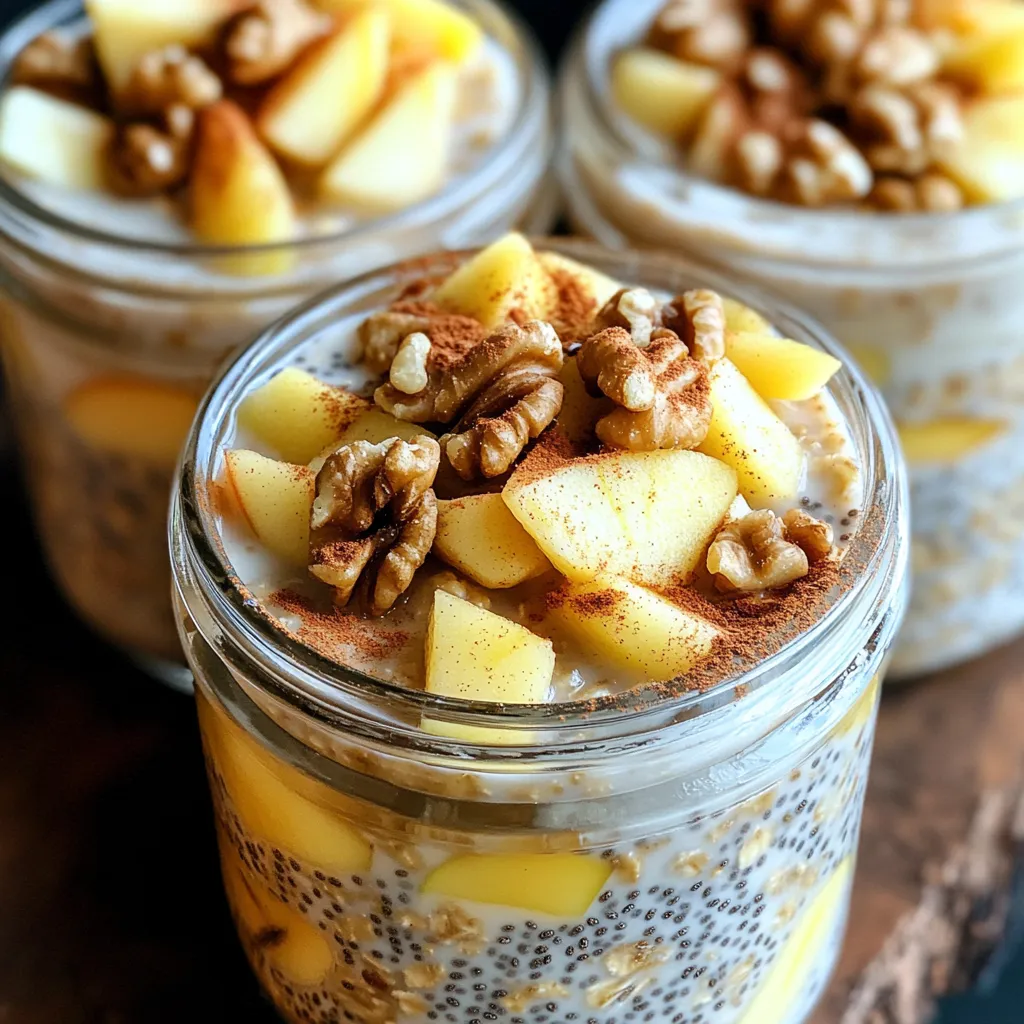 To keep your apple cinnamon overnight oats fresh, use airtight containers. Glass mason jars work great. They seal well and show off the layers. Plastic containers also work if they are airtight. Make sure to store your oats in the fridge. This keeps them safe and tasty.