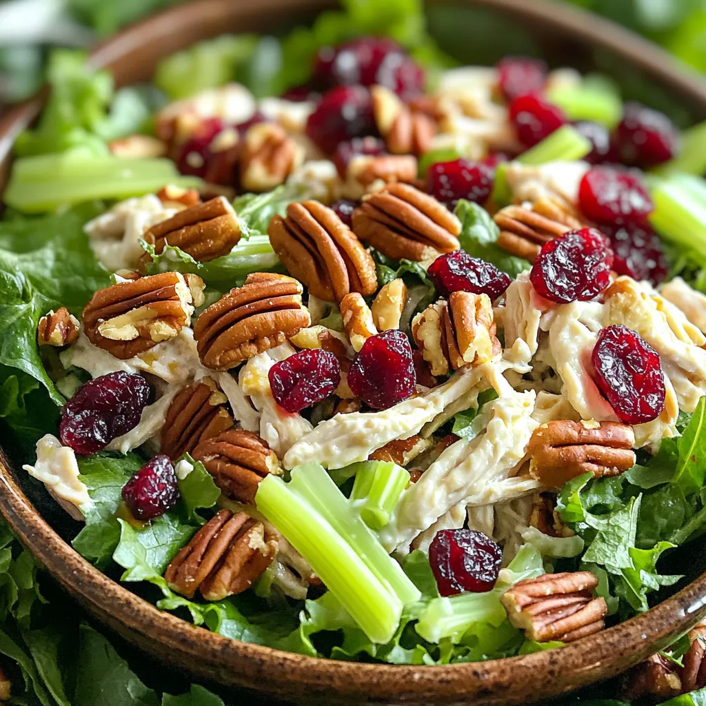 When mixing, be gentle. You want to keep the chicken pieces intact. Serve the salad in large bowls. Garnish with extra pecans and cranberries. This makes it look pretty. A drizzle of honey on top adds extra sweetness. If you want a fresh touch, add some lemon zest.