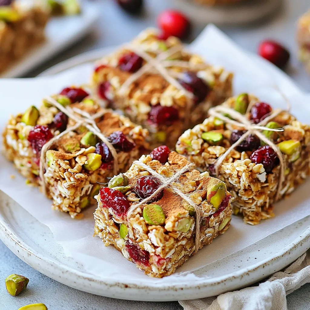 To keep your cranberry pistachio energy bars fresh, place them in an airtight container. Store this container in the refrigerator. This will help the bars stay moist and tasty. If you want to keep them longer, you can freeze them. Just wrap each bar in plastic wrap and then place them in a freezer bag. This method helps preserve their flavor and texture.