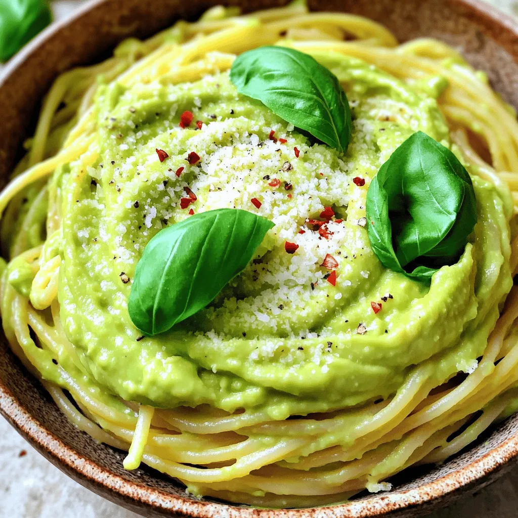 You can make this dish your own with a few simple add-ins. Try adding sun-dried tomatoes for a tangy touch. Fresh spinach adds color and nutrition. You can also mix in cooked chicken or shrimp for extra protein. For a nutty flavor, sprinkle in some toasted pine nuts. Each add-in brings its own twist to this creamy avocado pasta.
