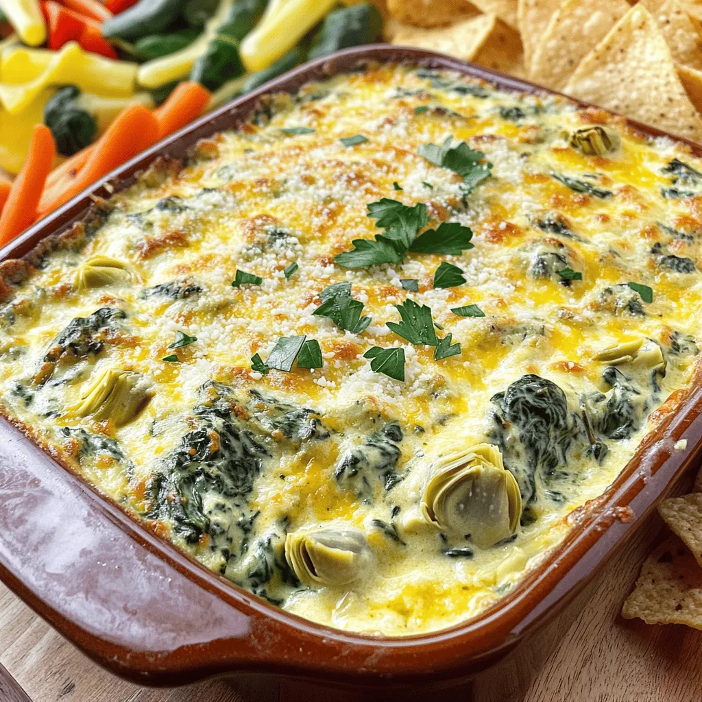 Serve the dip hot for the best taste. Use tortilla chips, sliced baguette, or fresh veggies for dipping. You can also place it in a bread bowl for a fun twist. Don’t forget to garnish with extra Parmesan and parsley. It makes the dish look even better. For a sweet touch, serve with sliced apples or pears.