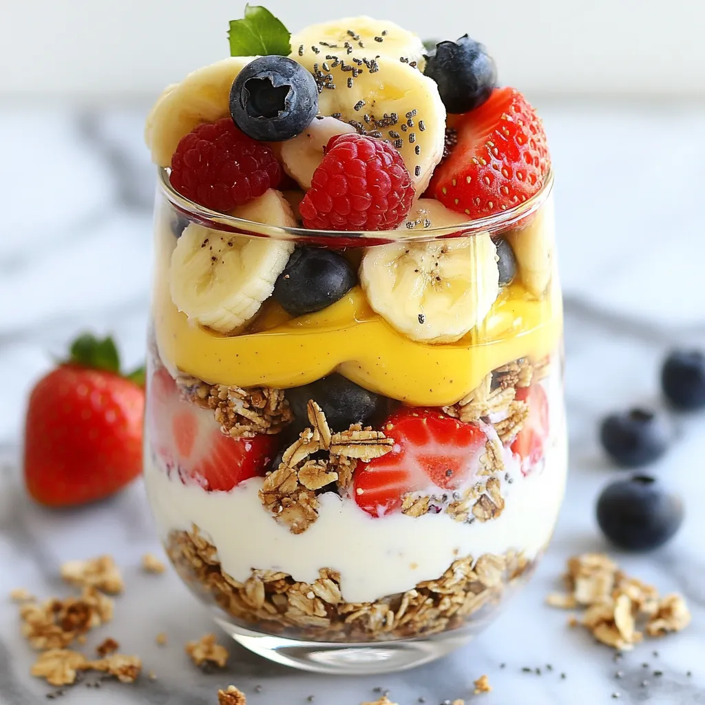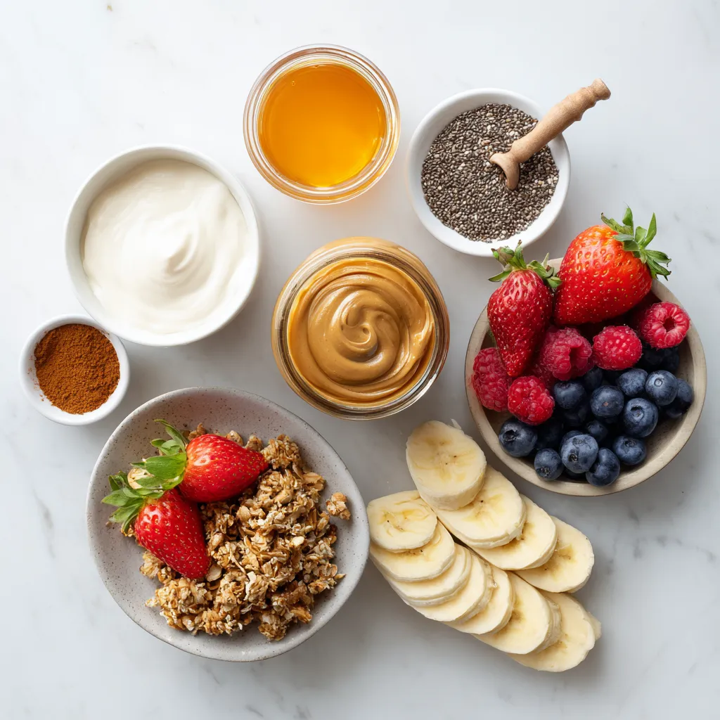 The main ingredients of this parfait create a tasty and filling treat. Greek yogurt gives a creamy base. Sunflower butter adds a nutty flavor. Honey or maple syrup sweetens it up nicely. Bananas and mixed berries bring freshness and color. Granola adds a crunchy layer that makes each bite fun. Chia seeds offer extra nutrients, while cinnamon gives a warm spice touch.
