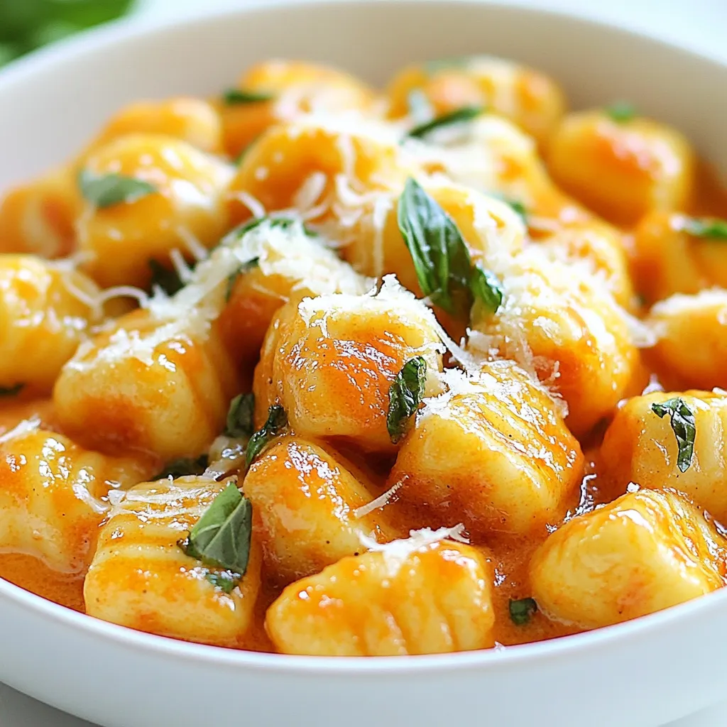 - Add the cooked gnocchi to the skillet, tossing gently to coat in the creamy tomato sauce.