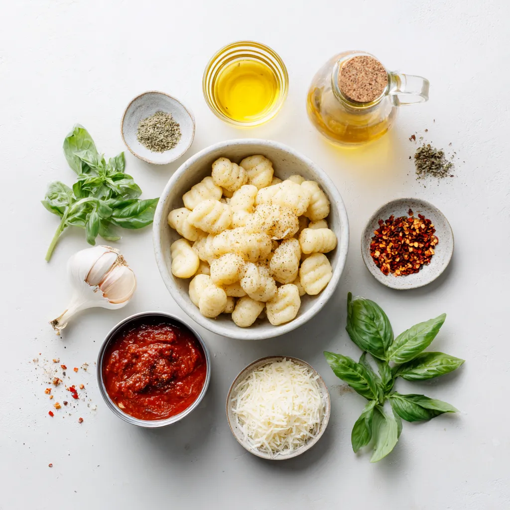When planning to make Creamy Tomato Basil Gnocchi, gather all your ingredients first. This will make cooking easier and more fun. If you want to add some heat, grab red pepper flakes. They bring a nice kick to the dish. Fresh basil is key for that bright flavor, so donβt skip it.