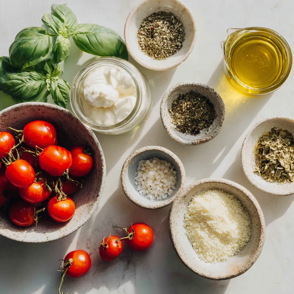 For seasonings, dried basil and oregano add depth. They complement the tomatoes nicely. I always use salt and pepper to enhance flavor. Fresh basil leaves are my go-to for garnishing. They add color and freshness. Finally, I sprinkle grated Parmesan cheese on top when serving. It adds a salty richness that ties the dish together.