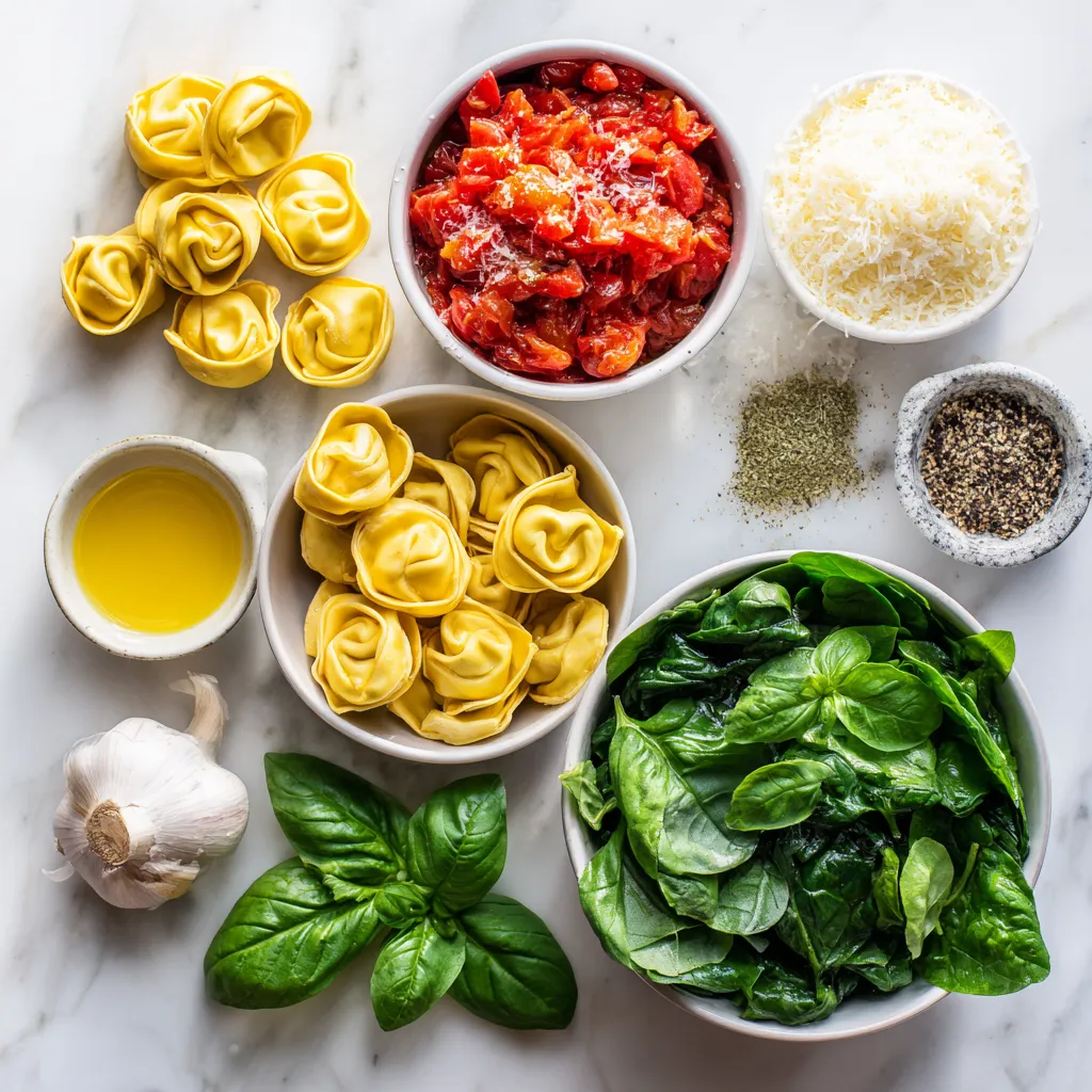A delicious and creamy pasta dish featuring cheese tortellini, fresh spinach, and a rich tomato sauce.