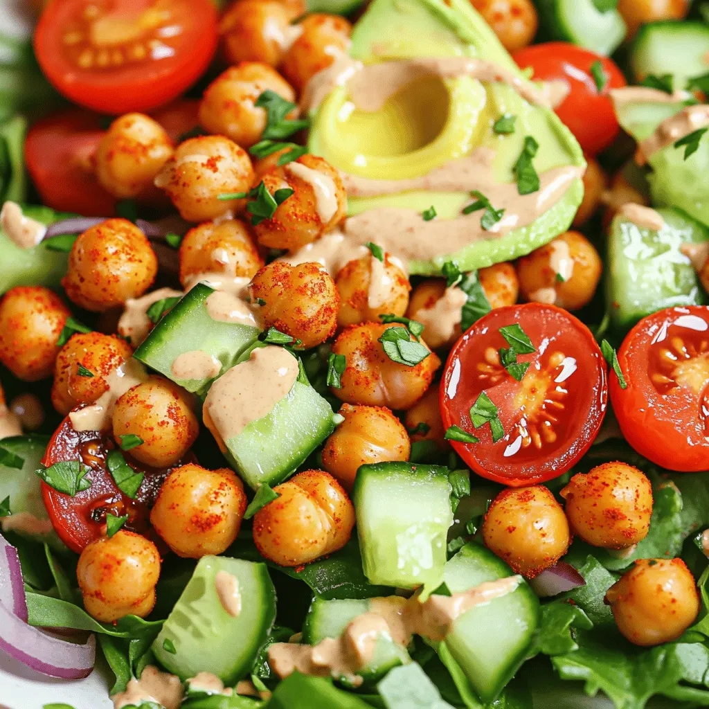 Gathering the right ingredients makes a big difference. For this crispy chickpea salad, use canned chickpeas for a quick option. Rinse and drain them well. This helps remove extra sodium and gives a better taste.