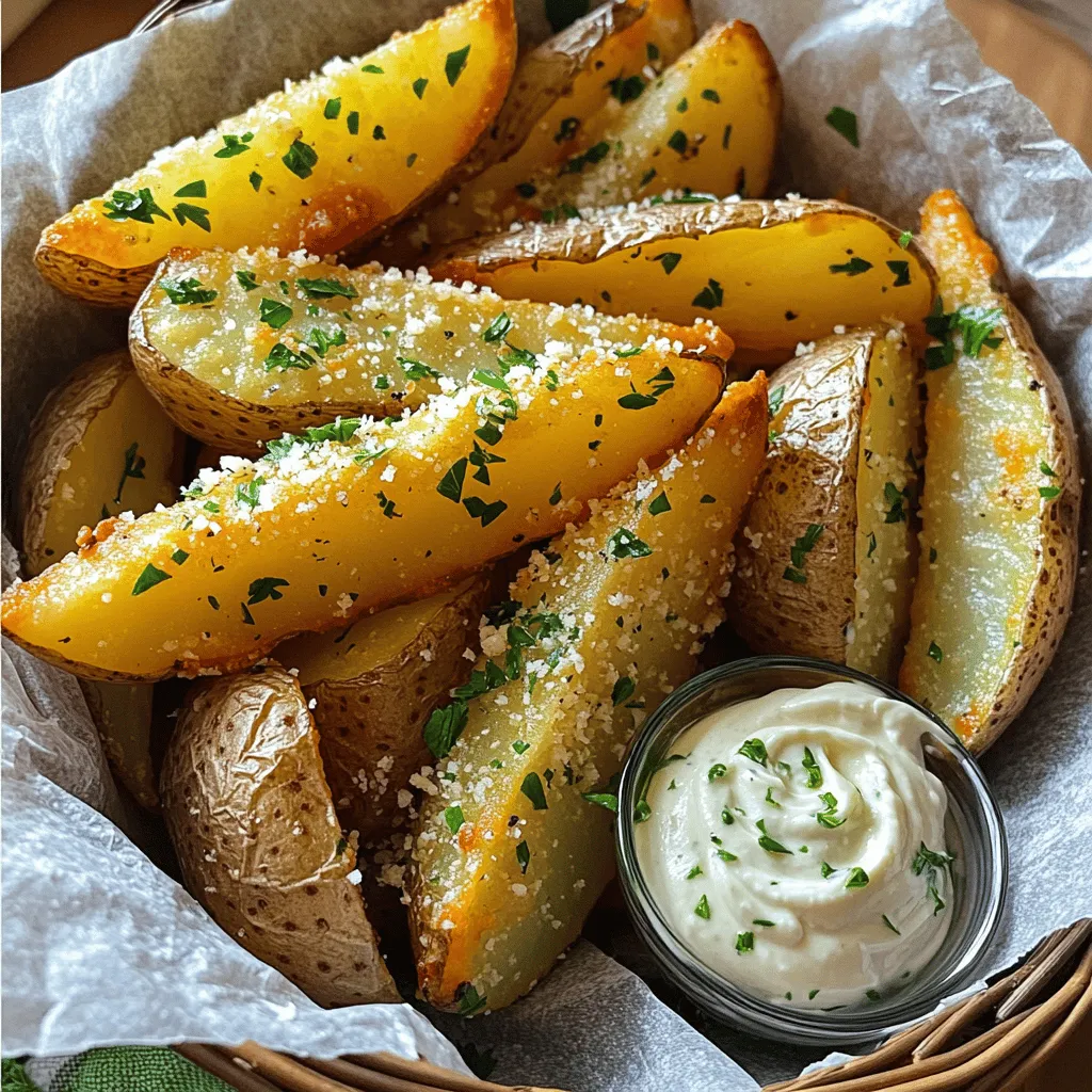 . {{image_2}} You can mix and match flavors for your potato wedges. If you want a spicy kick, add some cayenne pepper. You can also use fresh herbs like rosemary or basil for a new taste. Try some cheese powder for a cheesy flavor. You can even add a squeeze of lemon juice for brightness. These tweaks keep the dish exciting and fun. If you want to try different cooking methods, the air fryer is a great option. It can make the wedges crispy with less oil. Cook them at 400°F for about 20 minutes. Shake the basket halfway through for even cooking. For a deep-fried version, heat oil to 350°F. Fry the wedges until golden brown, about 5-7 minutes. Both methods give you delicious results. To make your crispy garlic herb potato wedges stand out, serve them with dips. Garlic aioli or spicy ketchup adds extra flavor. You can also add a sprinkle of crumbled feta or a drizzle of balsamic glaze for a gourmet touch. For a complete meal, pair them with grilled chicken or a fresh salad. These ideas will take your side dish to the next level. For the full recipe, check out the original instructions. To keep your leftover potato wedges fresh, let them cool first. Place them in an airtight container. You can also wrap them tightly in plastic wrap. Store them in the fridge. They will stay good for 3 to 5 days. If you want to enjoy them later, freezing is a great option. For the best taste, reheat your potato wedges in the oven. Preheat your oven to 400°F (200°C). Spread the wedges on a baking sheet. Heat them for about 10-15 minutes. This keeps them crispy. You can also use an air fryer. Just heat them for about 5-7 minutes. They will taste almost as good as fresh! If you want to freeze your wedges, first let them cool. Place them in a single layer on a baking sheet. Freeze them until solid, then transfer to a freezer bag. Make sure to remove as much air as possible. They will last up to 3 months in the freezer. To thaw, take them out and leave them in the fridge overnight. Reheat them as mentioned before for the best results. If you don't have parsley, try using chives or cilantro. Chives add a mild onion taste. Cilantro brings a fresh, bright flavor. Both options look great on the dish. You can even use arugula for a peppery kick. Just chop them finely before using. To make your potato wedges crispier, soak them in cold water for 30 minutes. This helps remove excess starch, which can make them soggy. After soaking, dry the wedges well with a towel. Toss them with oil and seasonings before baking. Using a hot oven also helps achieve that golden crunch. Yes, you can prepare the potato wedges ahead of time. Cut and season them, then place them in an airtight container. Store them in the fridge for up to 24 hours. When ready to bake, just pop them in the oven. They will still taste fresh and delicious. For the full recipe, check the earlier section. In this blog post, we explored making crispy garlic herb potato wedges. We covered ingredients, from the best potatoes to tasty substitutes. I gave you step-by-step baking instructions and tips for optimal crispiness. We discussed seasoning, cutting techniques, and cooking methods. You can elevate your dish with flavor variations and smart serving ideas. Lastly, I shared how to store and reheat leftovers. Remember, these wedges are easy to make and packed with flavor. Enjoy your cooking journey and the delightful snacks ahead!](https://cookingwells.com/wp-content/uploads/2025/07/dd962bca-b4e4-4223-a082-d22742269e03-768x768.webp)