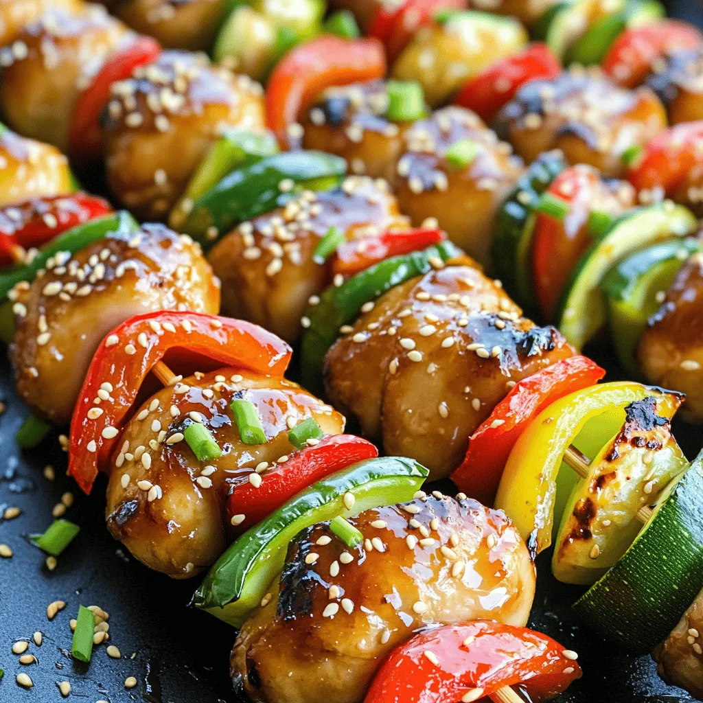 To make easy teriyaki chicken skewers, you need a few key ingredients. These will help you create a tasty and colorful meal. Here’s what you will need: - Chicken and Marinade Components - 1 lb (450g) boneless, skinless chicken thighs, cut into 1-inch pieces - 1/4 cup soy sauce - 1/4 cup honey - 2 tablespoons rice vinegar - 1 tablespoon sesame oil - 2 cloves garlic, minced - 1 teaspoon fresh ginger, grated - 1 tablespoon cornstarch mixed with 2 tablespoons water (to thicken the sauce) - Vegetables for Skewers - 1 red bell pepper, cut into 1-inch pieces - 1 green bell pepper, cut into 1-inch pieces - 1 small zucchini, sliced into thick rounds - Bamboo or metal skewers (if using bamboo, soak in water for 30 minutes) - Garnish Essentials - Sesame seeds - Chopped green onions These ingredients will bring out great flavors in your skewers. The chicken pairs perfectly with the sweet and salty marinade. The veggies add color and crunch. You can find the full recipe for easy teriyaki chicken skewers further along in this article. Enjoy cooking! Marinating the Chicken Start by making the marinade. In a bowl, whisk together soy sauce, honey, rice vinegar, sesame oil, minced garlic, and grated ginger. This mix gives the chicken a sweet and savory taste. Divide the marinade in half. Place the chicken pieces in one half and marinate for at least 30 minutes. If you have time, let them sit for up to 2 hours. This makes the flavors stronger. Preparing the Skewers While the chicken marinates, prepare your vegetables. Cut the bell peppers and zucchini into 1-inch pieces. Thread the vegetables onto skewers, alternating colors. This adds visual appeal and flavor. If you use bamboo skewers, soak them in water for 30 minutes. This helps prevent burning. Cooking Process After marinating, remove the chicken from the fridge. Thread the chicken onto the other half of the skewers, mixing with the vegetables. Heat your grill or grill pan on medium-high. Lightly oil the grill grates. Grill the skewers for about 5-7 minutes on each side. The chicken should be cooked through and have nice grill marks. In the last few minutes, baste with the thickened teriyaki sauce. Once done, let the skewers rest for a few minutes. Drizzle any remaining sauce over them. Garnish with sesame seeds and chopped green onions for a lovely finish. For the full recipe, check the details above. Enjoy your delicious teriyaki chicken skewers! Timing for Marination Marinate your chicken for at least 30 minutes. This lets the flavors soak in. Longer is better. If you can, let it sit for up to 2 hours. This will really boost the taste. Adjusting Flavor Profiles Feel free to tweak the marinade. Want it sweeter? Add more honey. Prefer a saltier taste? Increase the soy sauce. Experiment until it suits your palate. Alternative Marinade Ingredients You can switch up the marinade ingredients too. Try adding orange juice for a citrus touch. Or use lime juice for a zesty kick. Different oils, like olive oil, can also change the flavor. Optimal Grill Settings Set your grill to medium-high heat. This gives nice grill marks and helps cook the chicken quickly. If it’s too hot, the outside cooks too fast, leaving the inside raw. Tips for Avoiding Sticking Oil your grill grates before cooking. You can use a paper towel dipped in oil on tongs. This will help keep your skewers from sticking. Checking Chicken Doneness Check if the chicken is done by cutting a piece. It should be white inside with no pink. The internal temperature should reach 165°F (75°C). If you have a meat thermometer, use it for best results. These tips will help you make the best teriyaki chicken skewers. For the complete cooking guide, check the Full Recipe. {{image_2}} Other Meat Options You can swap chicken for other meats. Pork or beef works great. Use boneless cuts for best results. Just adjust cooking times. Try marinating them the same way as chicken. You’ll get a tasty twist on the classic dish. Vegetarian Choices If you prefer a meatless meal, use tofu or tempeh. They soak up flavors well. Cut them into bite-sized pieces. You can also try mushrooms or eggplant. These veggies add a nice texture and flavor. Recommended Seasonings Boost the taste with spices. Try adding crushed red pepper for heat. Garlic powder or onion powder can deepen the flavor. A sprinkle of black sesame seeds adds a nutty crunch. Substitute Veggies Don’t limit yourself to bell peppers and zucchini. Use cherry tomatoes or mushrooms for a fun twist. Carrots or asparagus work well too. Just remember, cut them to similar sizes for even cooking. This keeps your skewers colorful and tasty. For the complete recipe, check out the Full Recipe. To keep your teriyaki chicken skewers fresh, follow these easy steps. First, let the skewers cool to room temperature. Next, place them in an airtight container. You can store leftovers in the fridge for up to three days. Make sure to cover them well to prevent moisture loss. If you want to keep them longer, consider freezing. Wrap the skewers tightly in plastic wrap, then place them in a freezer bag. This helps avoid freezer burn. You can freeze them for up to three months. Label your bags with the date for easy tracking. When it's time to enjoy your leftovers, reheating is key. The best way is to use a grill or a stovetop pan. Heat the grill to medium-low and place the skewers on it. Grill for about five minutes, turning occasionally until they are hot. This method keeps the chicken juicy and gives it a nice char. If you're using a pan, add a splash of water to help steam the chicken. Cover the pan with a lid to trap heat. Heat for about five to seven minutes, checking often. Avoid reheating in the microwave if you can. It can make the chicken tough and rubbery. Keeping the texture is important for the best taste experience. How long do I marinate the chicken? You should marinate the chicken for at least 30 minutes. If you have time, let it sit for up to 2 hours. This extr
