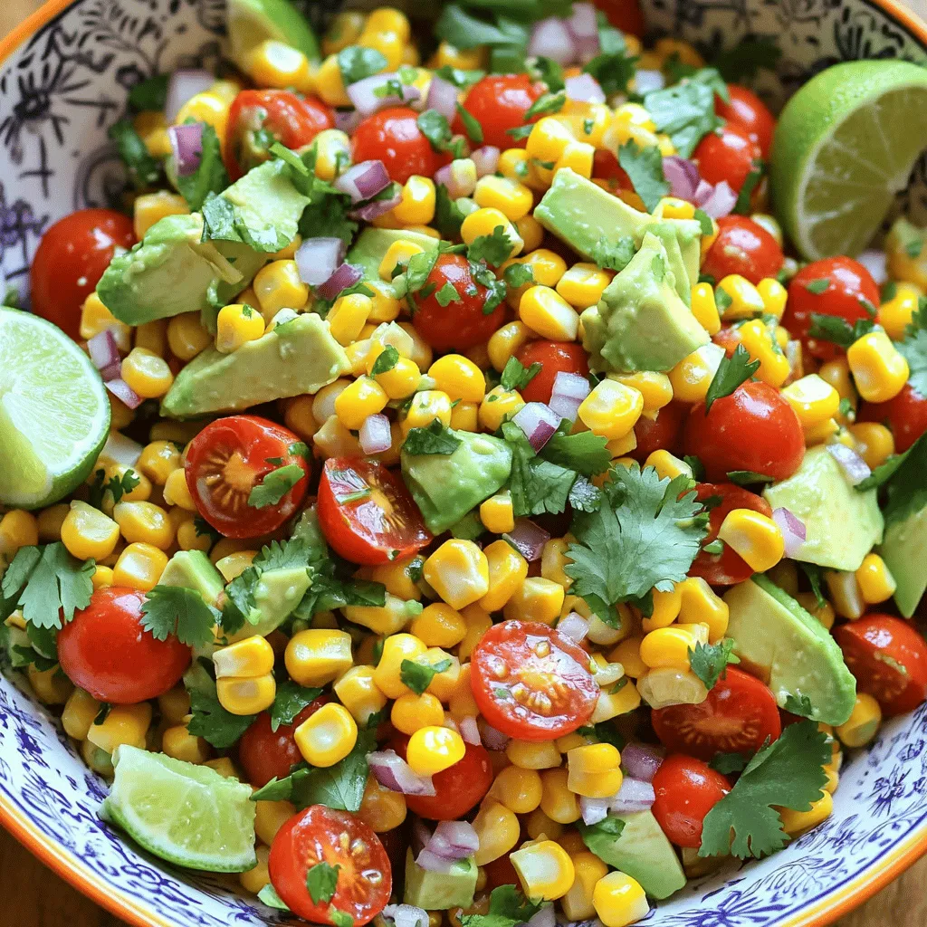 These fresh ingredients create a colorful and tasty salad. The corn adds sweetness, while the lime juice brings zesty brightness.