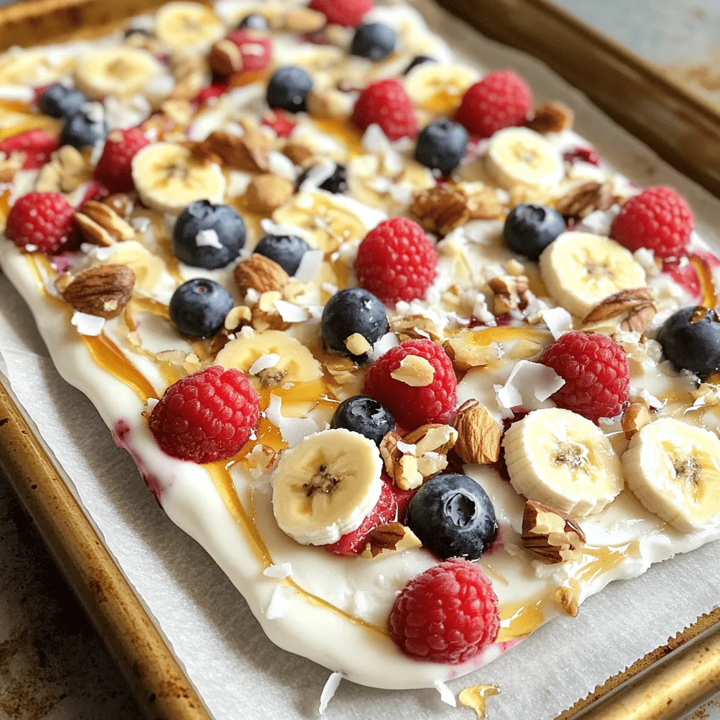 To make frozen yogurt bark, you need some key items. First, grab 2 cups of plain Greek yogurt. This yogurt gives your bark a creamy base. Next, add 2 tablespoons of honey or maple syrup. This sweetens it up just right. Don’t forget 1 teaspoon of vanilla extract for that yummy flavor.