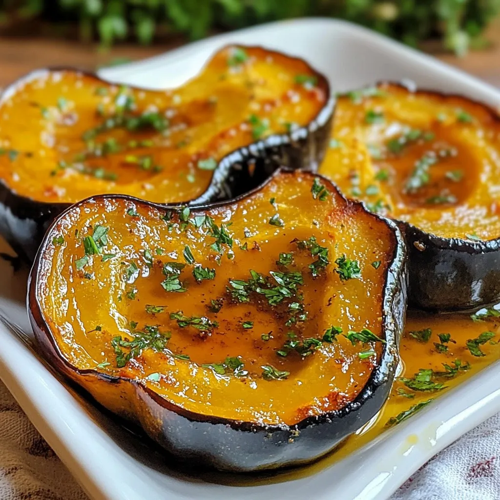 Serve the acorn squash halves on a decorative platter. Drizzle leftover roasting juices over them for added shine. Top with freshly chopped parsley for a pop of color. You can also add nuts for crunch or cranberries for sweetness. This makes the dish look and taste amazing.