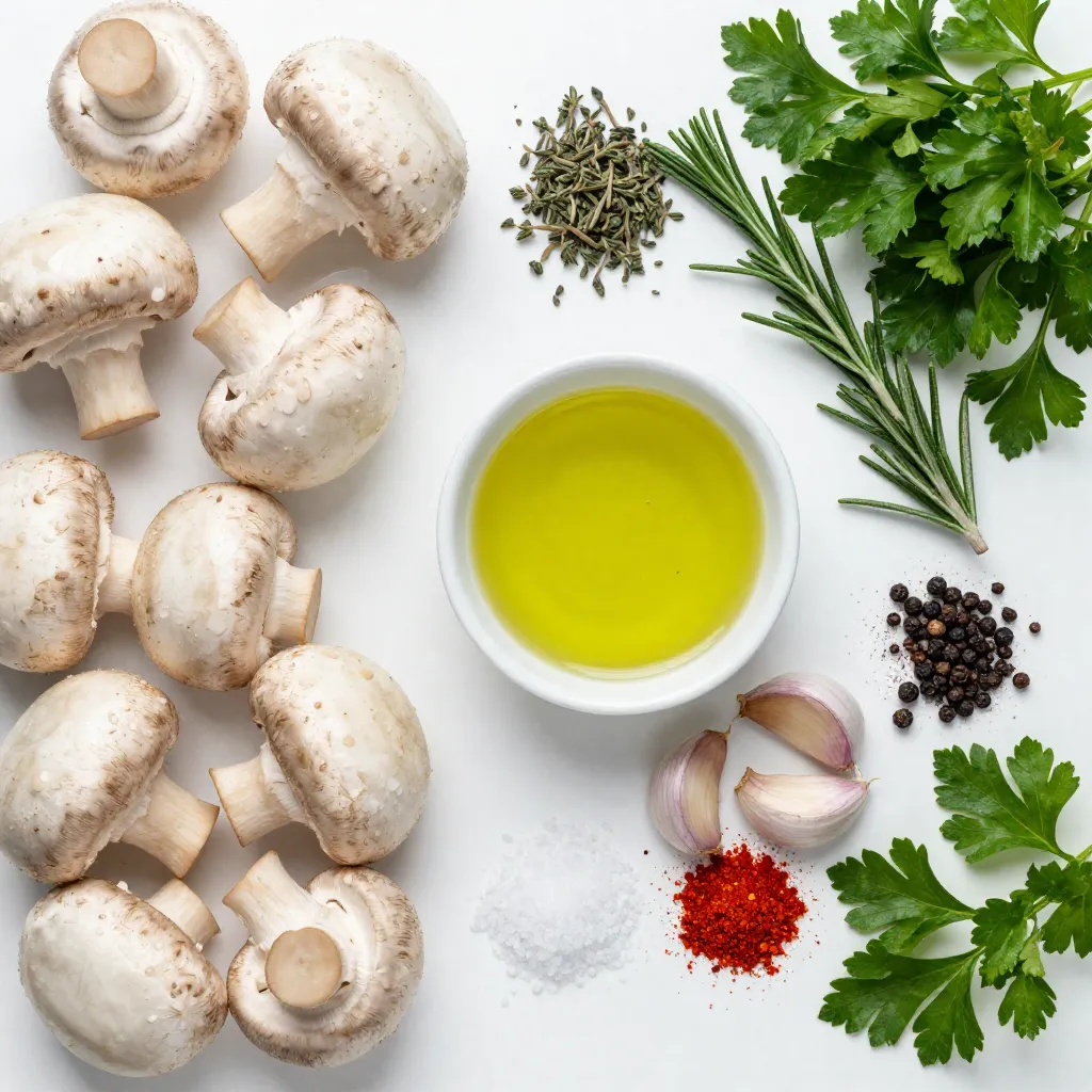 To make Garlic Herb Roasted Mushrooms, gather these items: - 500g button or cremini mushrooms, cleaned and trimmed - 4 tablespoons olive oil - 4 cloves garlic, minced - 1 teaspoon dried thyme - 1 teaspoon dried rosemary - 1 teaspoon paprika - Salt and pepper to taste - Fresh parsley, chopped for garnish You will need a few basic tools: - A large mixing bowl - A baking sheet - A spatula or wooden spoon - An oven to roast the mushrooms You can swap some ingredients if needed: - Use any mushroom type you like, such as portobello or shiitake. - If you don’t have olive oil, try using melted butter or avocado oil. - Fresh herbs like thyme or rosemary can replace dried ones. Just use more of them. - You can add other seasonings like garlic powder or onion powder for extra flavor. - If you want a spicy kick, add a pinch of cayenne pepper. {{ingredient_image_1}} 1. First, gather all your ingredients. You need mushrooms, olive oil, garlic, and herbs. 2. Clean the mushrooms carefully. Use a damp cloth to wipe them. Trim off any tough ends. 3. In a large bowl, mix the olive oil, minced garlic, thyme, rosemary, paprika, salt, and pepper. Stir well. 4. Add the cleaned mushrooms to the bowl. Toss gently until they are fully coated in the herb oil. 1. Preheat your oven to 200Β°C (400Β°F). This makes sure the mushrooms roast perfectly. 2. Spread the mushrooms on a baking sheet. Keep them in a single layer for even cooking. 3. Place the baking sheet in the oven. Roast the mushrooms for 15-20 minutes. 4. Halfway through, stir the mushrooms. This helps them brown evenly. 5. Check if they are golden brown and tender. If they are, take them out of the oven. - Use fresh herbs when you can. They add great flavor. - Don't crowd the mushrooms on the baking sheet. This keeps them from steaming. - For extra taste, drizzle a little olive oil before serving. - Garnish with fresh parsley for color and flavor. To get the best mushrooms, always preheat your oven. Set it to 200Β°C (400Β°F). This heat helps the mushrooms cook evenly. Make sure to coat them well in the herb oil mixture. Use a large bowl for tossing. Spread them out on the baking sheet. Keep them in a single layer. This way, they will brown nicely. You can boost the flavor of your mushrooms easily. Add a splash of lemon juice before serving. This adds brightness. You can also sprinkle some grated cheese on top. Parmesan works well. If you like heat, try adding red pepper flakes. This gives the dish a nice kick. Fresh herbs like basil or chives can also elevate the taste. How you serve the dish matters. Use a rustic wooden bowl for a cozy feel. A white platter makes the colors pop. Drizzle a bit of olive oil over the mushrooms before serving. This adds shine. To make it heartier, serve with crusty bread. This creates a lovely appetizer or side dish. Pro Tips Use Fresh Herbs: Fresh herbs can elevate the flavor of your roasted mushrooms significantly. If available, use fresh thyme and rosemary instead of dried ones for a more vibrant taste. Optimal Mushroom Size: Choose mushrooms that are similar in size for even cooking. Larger mushrooms may need a bit longer to roast, while smaller ones can cook faster. Experiment with Spices: Feel free to customize the spice blend according to your preference. Adding a pinch of chili flakes can give a spicy kick, or you can include some grated Parmesan for a cheesy flavor. Let Them Rest: After roasting, allow the mushrooms to rest for a minute before serving. This helps the flavors to settle and enhances the overall taste. {{image_2}} You can use many kinds of mushrooms for this dish. Button mushrooms are common and easy to find. Cremini mushrooms add a deeper flavor. Shiitake mushrooms bring a nice, rich taste too. You can even mix different types for more texture and taste. Just remember to clean them well and trim the stems. You can play with flavors in this recipe. Try adding some red pepper flakes for heat. A splash of balsamic vinegar gives a sweet touch. You could also switch dried herbs for fresh ones. Fresh thyme or rosemary can brighten the dish even more. Want a cheesy twist? Grate some parmesan on top before serving. This recipe is easy to adjust for any diet. For a vegan option, use olive oil without any worries. If you need gluten-free, rest assured this dish is already safe. You can skip the salt for a low-sodium version. Always check the ingredients to suit your needs, and enjoy every bite! After making garlic herb roasted mushrooms, let them cool first. Place your leftovers in an airtight container. Store the container in the fridge. These mushrooms can stay fresh for up to three days. Make sure to keep them covered tightly to avoid drying out. When you're ready to enjoy your leftovers, preheat your oven to 180Β°C (350Β°F). Spread the mushrooms on a baking sheet. Heat them for about 10 minutes. This will help them regain their crispy texture. You can also use a microwave if you’re short on time. Heat them for 30 seconds to 1 minute, but they may lose some crunch. If you want to save mushrooms for later, freezing is a great option. Start by cooling the mushrooms completely. Place them in a freezer-safe bag. Squeeze out as much air as you can before sealing. They can last up to three months in the freezer. When you are ready to use them, thaw them in the fridge overnight. Reheat them in the oven for best results. What type of mushrooms can I use? You can use button or cremini mushrooms. Both types work well. They provide great flavor and texture. Can I make this dish ahead of time? Yes, you can prepare the herb oil and clean the mushrooms ahead. Just combine them before roasting. How do I store leftovers? Store leftovers in an airtight container in the fridge. They last for about three days. How long does it take to roast mushrooms? Roast the mushrooms for 15 to 20 minutes. They should be golden brown and tender. Should I stir the mushrooms while cooking? Yes, stir the mushrooms halfway throug