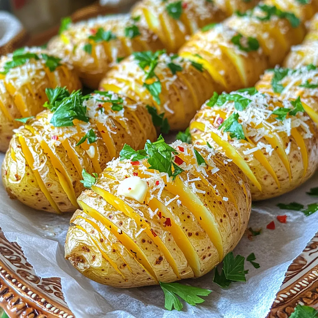 Hasselback potatoes are whole potatoes sliced thinly, but not all the way through. This creates a fan-like shape. They cook well and have crispy edges while staying soft inside. You can flavor them in many ways, like with garlic and cheese.