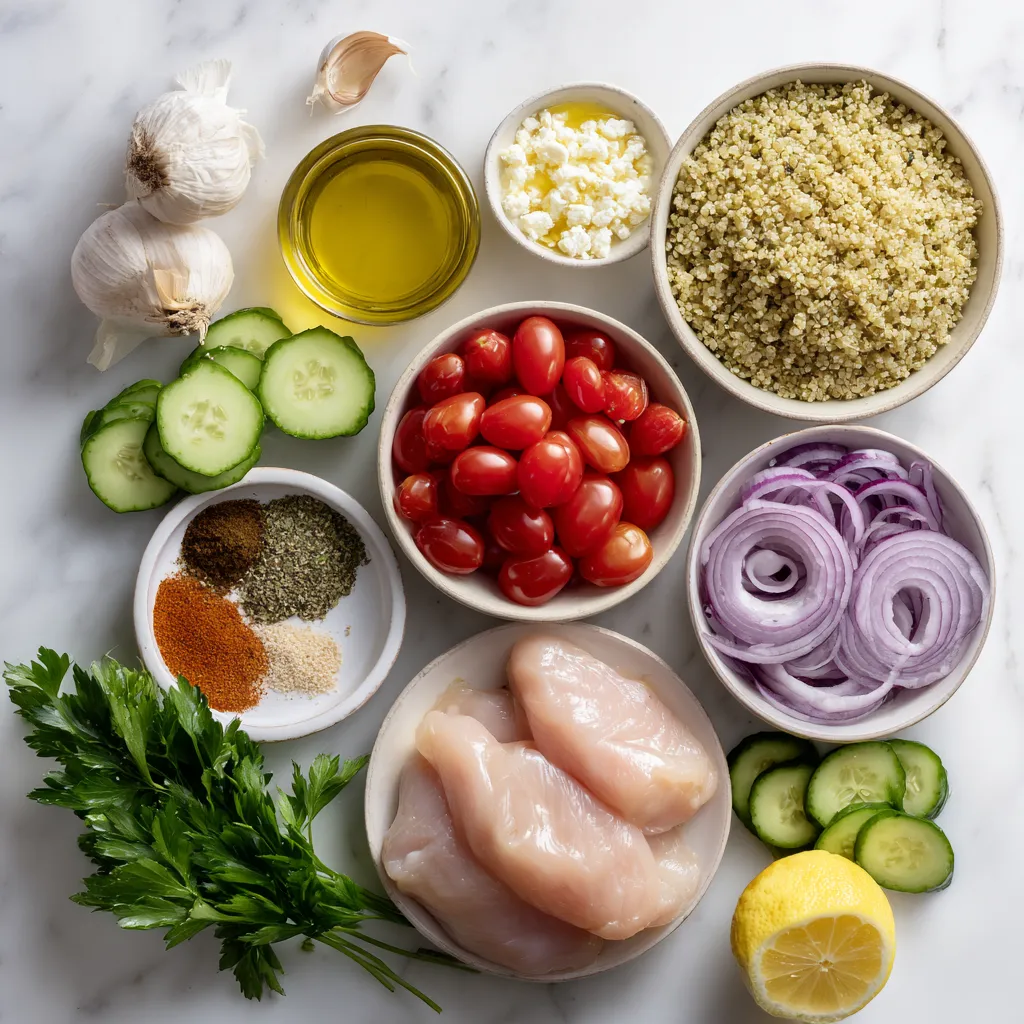 Main Ingredients for Greek Chicken Gyro Bowls