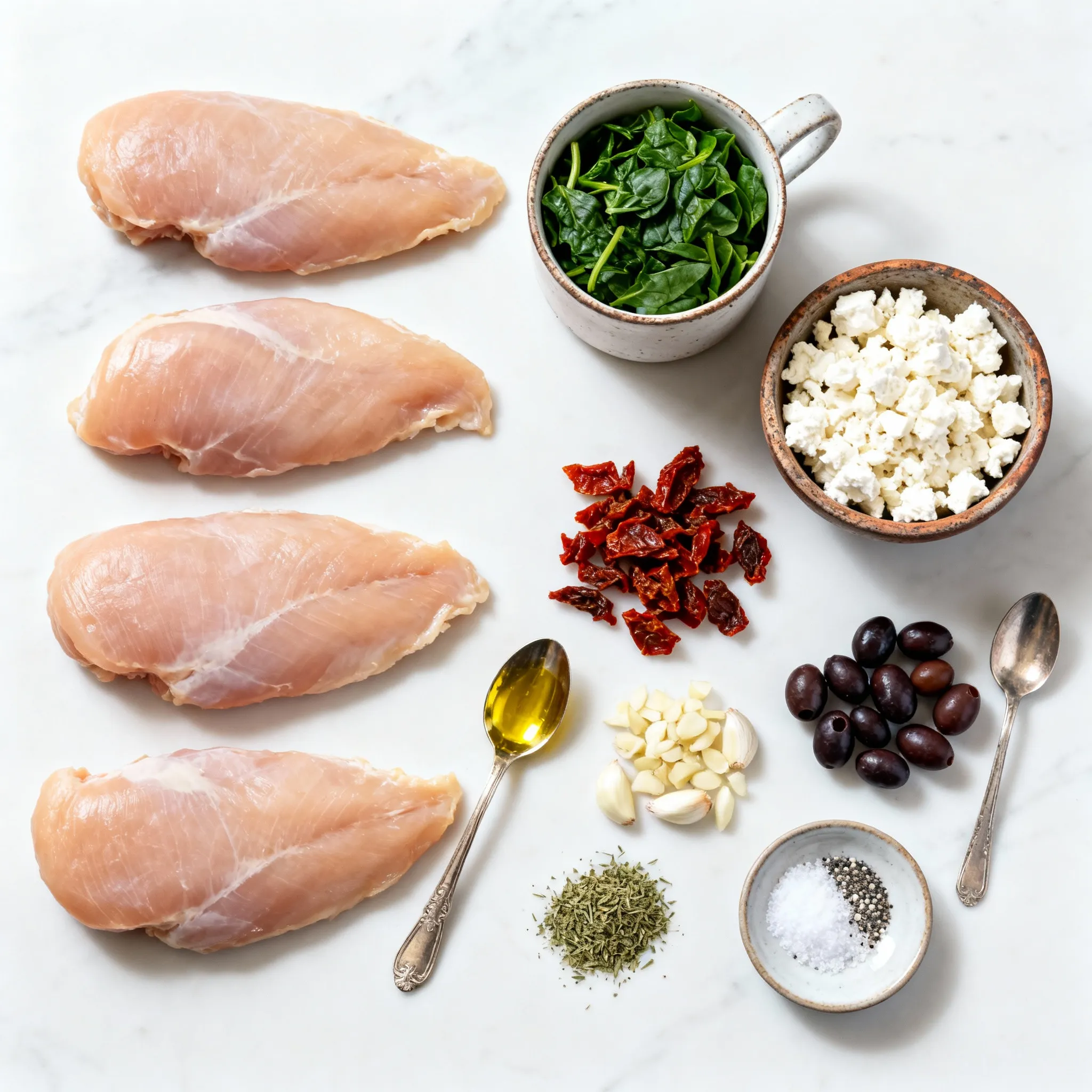 Begin by preheating your oven to 375°F (190°C). This step ensures the chicken cooks evenly. Next, gather your ingredients. In a bowl, mix together the chopped spinach, crumbled feta cheese, sun-dried tomatoes, Kalamata olives, minced garlic, dried oregano, olive oil, salt, and pepper. Make sure to mix well so every bite is tasty.