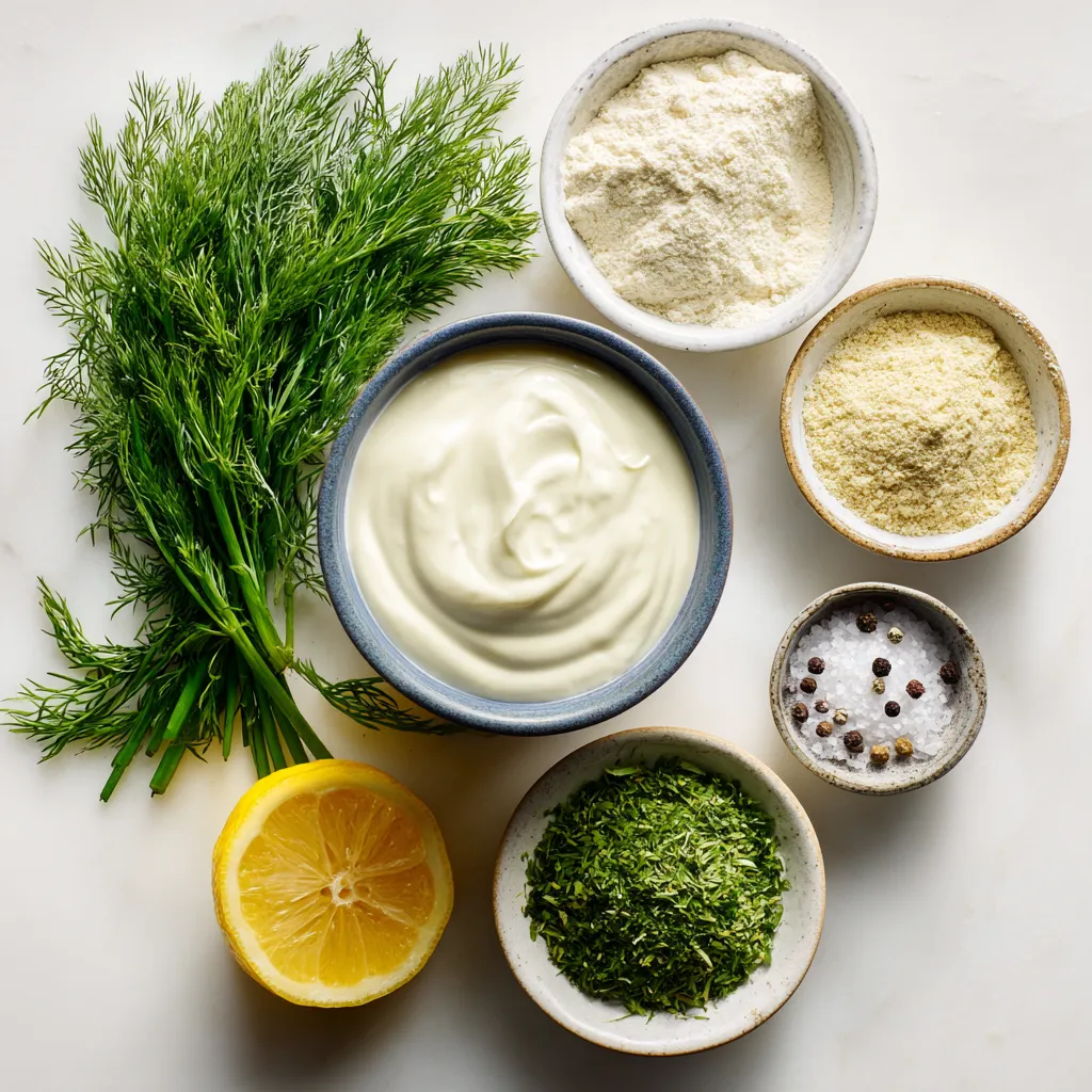 This dip starts with Greek yogurt. It gives a creamy base that is healthy and rich. Fresh dill and chives add a punch of flavor and brightness. Garlic and onion powder bring depth to the taste. Dried parsley gives a nice herbal note. Lemon juice adds a bit of zing, while salt and pepper round out the flavors.