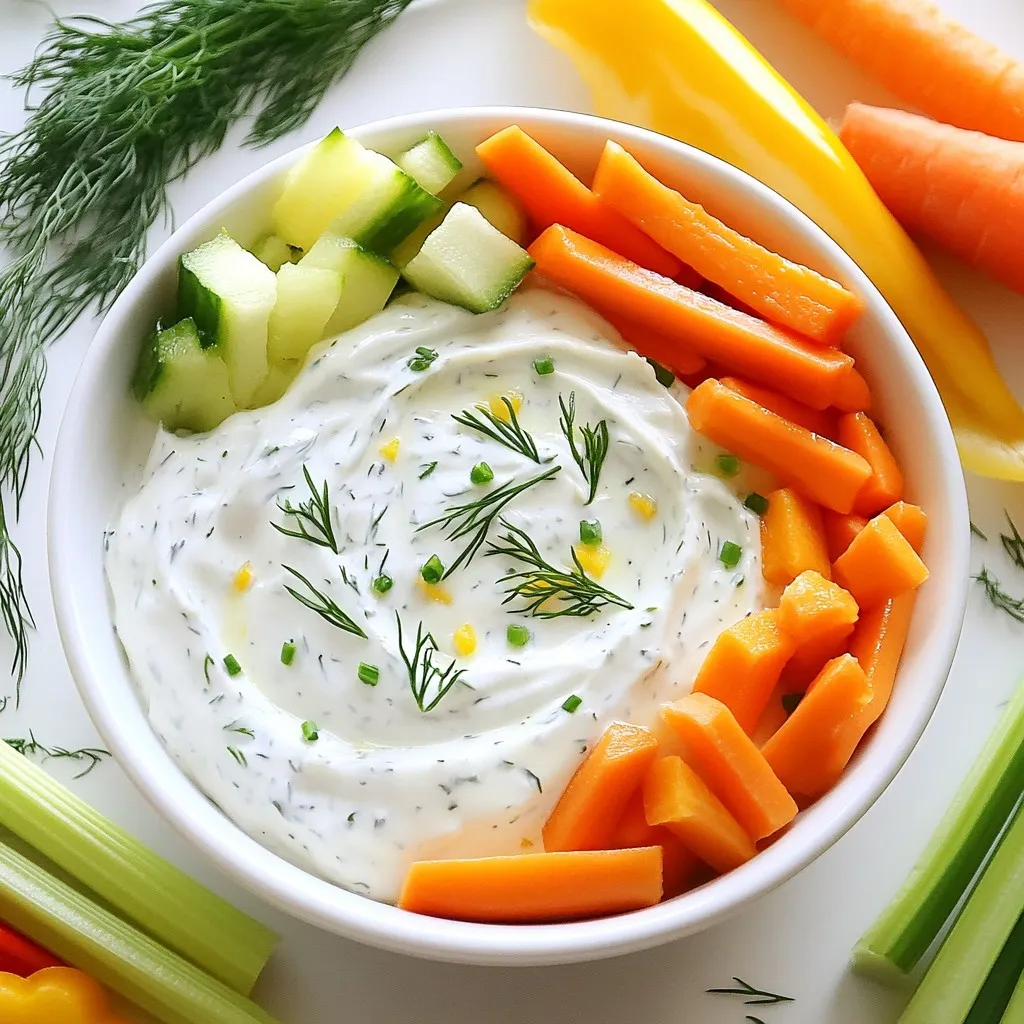 When you serve the dip, pair it with fresh veggies like carrots, celery, or bell peppers. These add crunch and color to your dish. Enjoy your healthy and tasty Greek yogurt ranch dip!