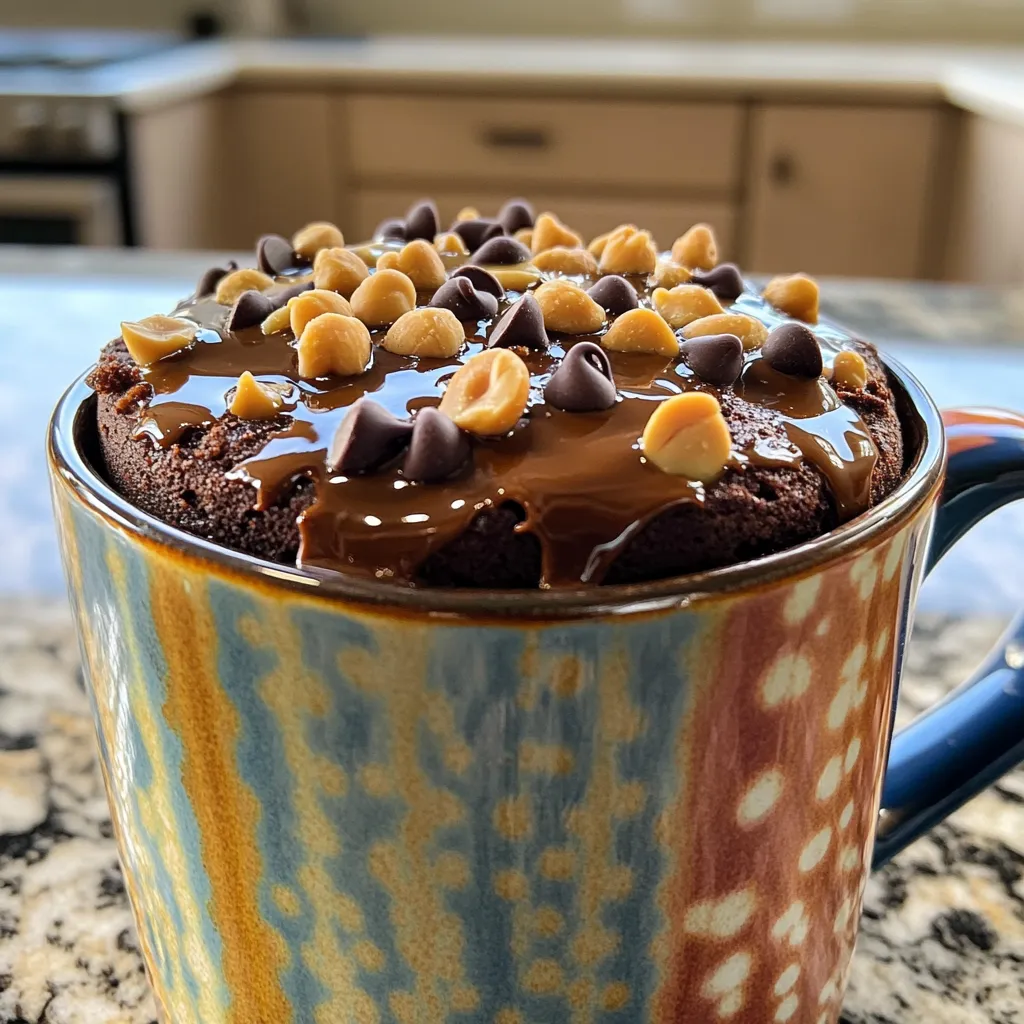 To make a high-protein chocolate peanut butter mug cake, you need these key ingredients: - 4 tablespoons almond flour - 2 tablespoons unsweetened cocoa powder - 1 scoop of chocolate protein powder - 1/2 teaspoon baking powder - 1 tablespoon peanut butter - 3 tablespoons unsweetened almond milk (or any milk of choice) - 1 tablespoon maple syrup (or honey) - 1/4 teaspoon vanilla extract - A pinch of salt These ingredients will create a rich and satisfying cake that packs a protein punch. To make your mug cake even more special, consider these toppings: - Chocolate chips - Crushed peanuts - Greek yogurt - Whipped cream Adding these toppings can enhance the texture and flavor of your cake. If you need to swap out some ingredients, here are some great options: - Use coconut flour instead of almond flour for a different flavor. - Substitute peanut butter with almond butter for a nut-free version. - Try honey instead of maple syrup for a touch of sweetness. - Use dairy milk if you don’t have almond milk. These substitutions keep the cake delicious while catering to your needs. To make your High-Protein Chocolate Peanut Butter Mug Cake, start with the right tools. Grab a microwave-safe mug. You’ll need the following ingredients: - 4 tablespoons almond flour - 2 tablespoons unsweetened cocoa powder - 1 scoop of chocolate protein powder - 1/2 teaspoon baking powder - 1 tablespoon peanut butter - 3 tablespoons unsweetened almond milk - 1 tablespoon maple syrup - 1/4 teaspoon vanilla extract - A pinch of salt First, mix the almond flour, cocoa powder, chocolate protein powder, baking powder, and salt in your mug. Stir well to break up any lumps. This step is key to a smooth cake. Next, add in the peanut butter, almond milk, maple syrup, and vanilla extract. Use a fork or small whisk to blend everything until smooth. If you want a sweeter touch, fold in some chocolate chips. Now, it’s time to cook your mug cake. Place the mug in the microwave and set the timer for 1 minute and 30 seconds. But keep an eye on it! At the 1-minute mark, check to see how it looks. The cake should rise and look set. It should feel moist in the center. If it’s not quite done, give it a few more seconds. Microwaves can vary, so adjust the time as needed. To check if your cake is done, look for these signs: - The top should look firm - There shouldn’t be any wet batter on the surface - A toothpick should come out clean or with a few moist crumbs Let your cake cool for a minute before digging in. This helps the flavors settle. For extra flair, sprinkle some crushed peanuts and chocolate chips on top. Enjoy your tasty treat! To get the best texture, mix dry and wet ingredients well. Each ingredient needs to blend smoothly. I like to use a fork for this. It helps break up lumps in the almond flour. The cake should feel thick but smooth. If it’s too runny, add a bit more almond flour. If it’s too thick, add a bit more almond milk. The right balance makes a fluffy cake. You can make this mug cake even better with simple tweaks. Try adding a dash of cinnamon for warmth. A pinch of sea salt enhances sweet flavors too. You can also add chocolate chips for extra richness. If you love nuts, fold in crushed peanuts. They add crunch and flavor. A dollop of Greek yogurt on top gives a creamy finish. Also, drizzle some honey or maple syrup on top for extra sweetness. One big mistake is not mixing well. If you skip this, the cake can have lumps. Another common error is overcooking. Microwaves vary, so check at one minute. The cake should rise and look set but still soft inside. Don’t forget to let it cool for a minute. This waiting time helps the cake finish cooking. Lastly, be careful with toppings. Too many can make the cake soggy. Keep it simple for the best results. {{image_2}} You can change the taste of your mug cake. Try using different nut butters like almond or cashew. You can also swap cocoa powder for carob powder. This gives a unique twist. Adding spices like cinnamon or nutmeg can add warmth. For a minty flavor, mix in a drop of peppermint extract. You can even fold in fruits like mashed banana or berries for freshness. If you want a gluten-free version, almond flour works great. For a lower-calorie option, use less peanut butter or a lower-calorie sweetener. You can also make it dairy-free by using almond milk or coconut milk. If you need it egg-free, this recipe is already eggless! Just be sure to check your protein powder for allergens. You can switch almond flour for coconut flour, but use less. Coconut flour absorbs more liquid. Instead of maple syrup, try agave syrup or stevia. If you want it richer, use full-fat coconut milk. For a protein boost, add Greek yogurt to the mix. Mix and match to create your perfect mug cake! To store your mug cake, let it cool first. Cover it tightly with plastic wrap or place it in an airtight container. This keeps it fresh for up to two days. If you want to keep it longer, freeze it instead. When you're ready to enjoy your leftover mug cake, heat it in the microwave. Start with 15 to 20 seconds on high. Check if it’s warm enough. If not, heat it for another 10 seconds. Be careful not to overcook it. For freezing, wrap the mug cake tightly in plastic wrap. Place it in a freezer-safe bag or container. It can stay in the freezer for up to a month. To eat, thaw it in the fridge overnight. Then, reheat as mentioned. This way, you can enjoy your high-protein treat anytime! Yes, you can use other protein powders. Whey, casein, or plant-based options work well. Each type may change the taste and texture slightly. If you use a different flavor, adjust the cocoa powder for balance. To make this mug cake vegan, use plant-based protein powder. Swap the maple syrup for agave nectar. Instead of almond milk, any non-dairy milk like soy or oat will work. Lastly, use a vegan peanut butter without added sugar. I love enjoying this mug cake warm. It tastes great plain or topped. Try adding 