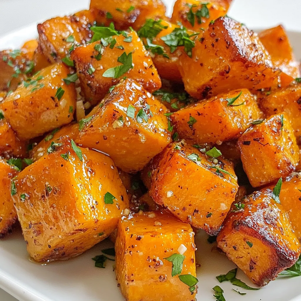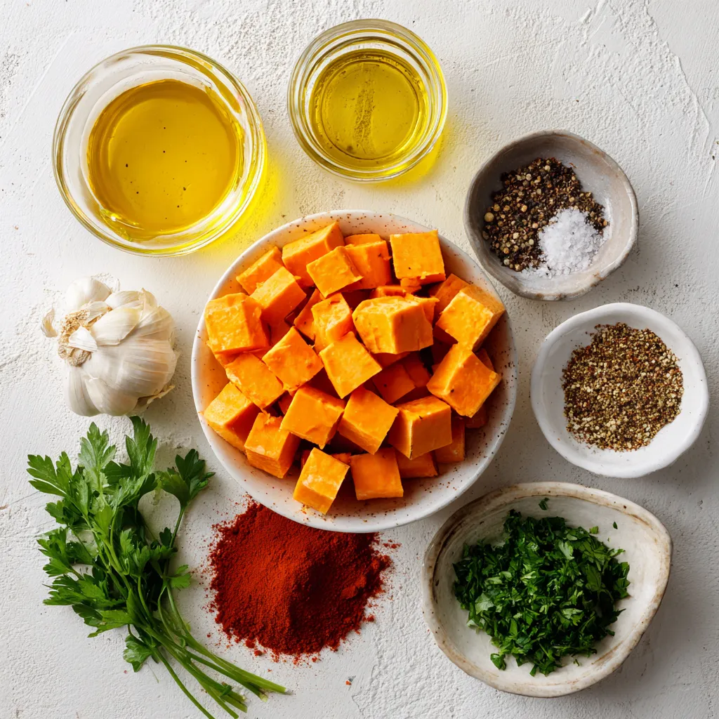 The seasonings elevate the sweet potatoes. Smoked paprika adds a subtle smoky flavor. Black pepper gives some heat, while salt enhances all the flavors. Fresh parsley adds a burst of color and freshness as a garnish.