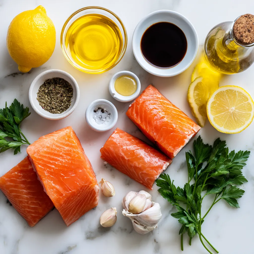 The main ingredients for honey lemon garlic salmon are simple yet flavorful. The star of the dish is fresh salmon. You want four fillets, each about six ounces. This ensures everyone gets a good serving.