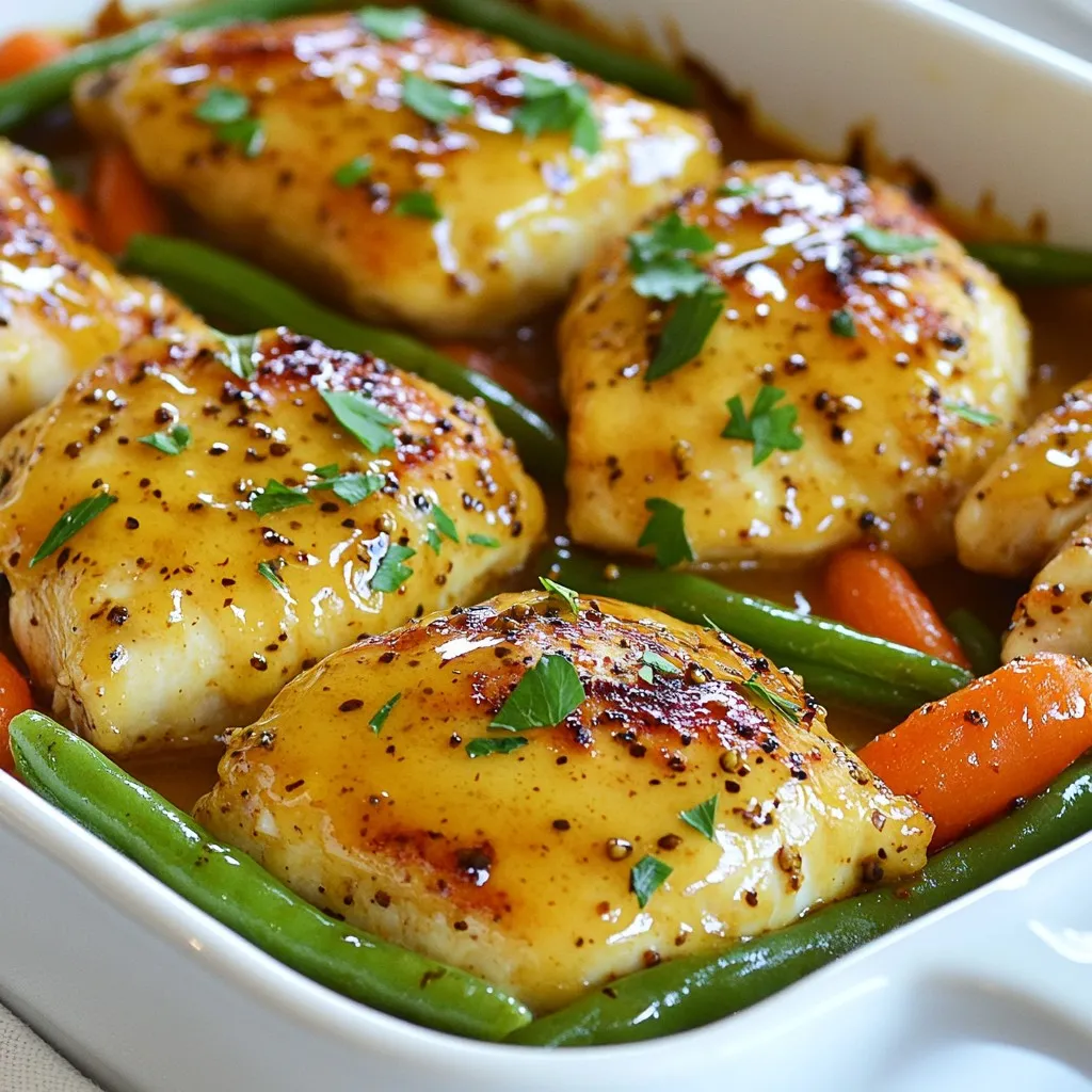 Fresh green beans and baby carrots bring color and crunch. They soak up the honey mustard flavor during baking. The green beans stay crisp, while the carrots become tender. Both are healthy choices that pair well with chicken.