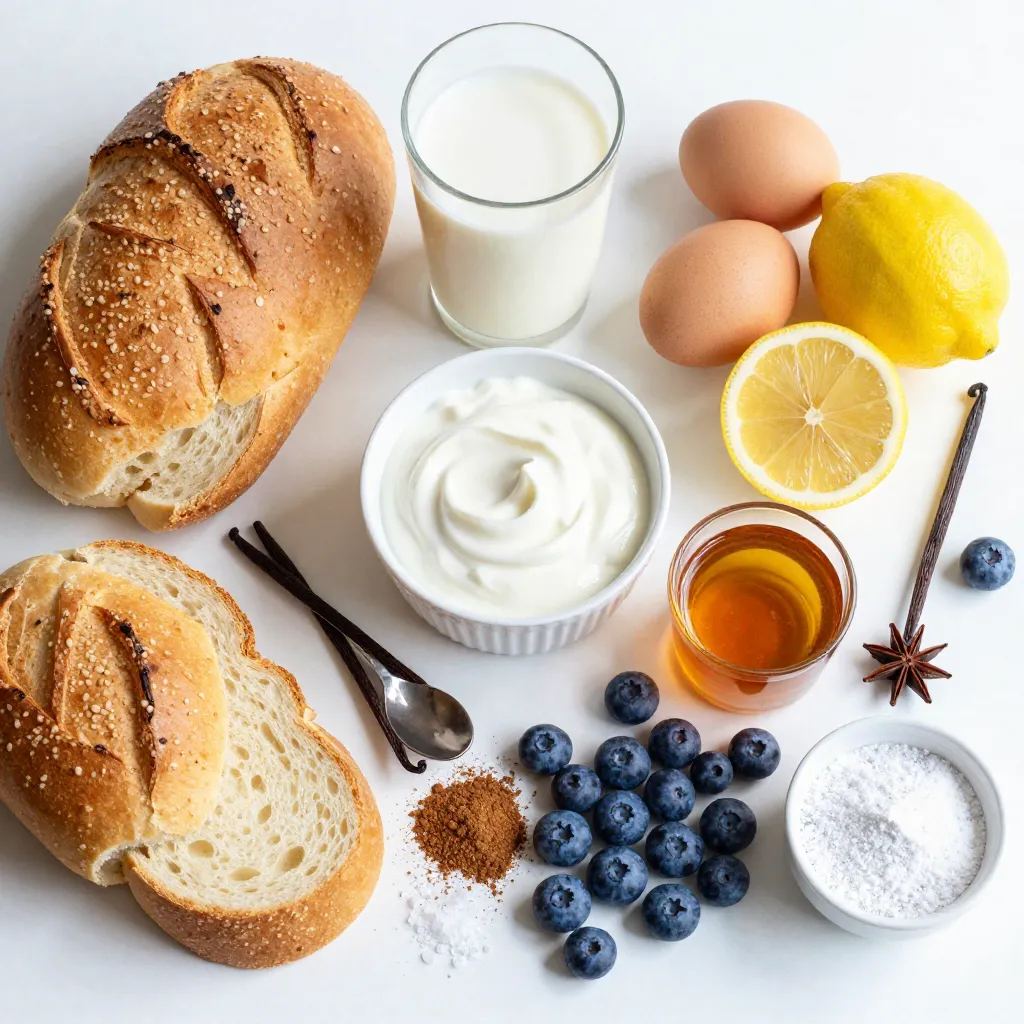 To make this Lemon Blueberry Overnight French Toast, gather these items: