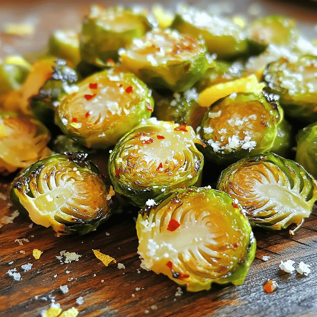 - 1 lb Brussels sprouts, trimmed and halved - 3 tablespoons olive oil - 4 cloves garlic, minced - Zest of 1 lemon - Juice of 1 lemon - 1 teaspoon salt - 1/2 teaspoon black pepper - 1/4 teaspoon red pepper flakes - 2 tablespoons grated Parmesan cheese When I make Lemon Garlic Roasted Brussels Sprouts, I start with the essential ingredients. First, I choose fresh Brussels sprouts. I trim them and cut them in half. This helps them cook evenly. I also use high-quality olive oil. It adds richness and helps the garlic flavor shine. Finely minced garlic gives a great aroma and taste. Next, I add some zest and juice from a lemon. The zest brightens the dish, while the juice adds tang. A touch of salt brings out all the flavors. For extra flavor, I often add black pepper and red pepper flakes. These spices enhance the taste and give a small kick. If I want a cheesy finish, I sprinkle some grated Parmesan cheese on top. This recipe is simple yet packed with flavor. You can find the full recipe at the beginning. Enjoy the cooking adventure! - Preheat oven to 425°F (220°C). - In a large mixing bowl, combine the halved Brussels sprouts, olive oil, minced garlic, lemon zest, lemon juice, salt, black pepper, and red pepper flakes. Toss well to ensure the sprouts are evenly coated. Starting with the prep, I love to get the oven hot. Preheating helps the sprouts crisp up nicely. Once your oven is ready, grab a mixing bowl. Toss in your trimmed and halved Brussels sprouts. Next, add olive oil to coat them. This oil helps with browning. Then, throw in the minced garlic. Garlic gives a nice kick of flavor. Next, zest a lemon into the bowl. The zest brings out a fresh taste. Squeeze the juice of that lemon in too. It brightens up the dish. Add the salt and black pepper for seasoning. If you want some heat, toss in red pepper flakes. Now, mix everything well so the sprouts are fully covered. - Spread on a baking sheet. - Roast for 20-25 minutes. Now it's time to roast! Take a baking sheet and spread the Brussels sprouts evenly. Place them cut-side down. This helps them caramelize. Roasting takes about 20 to 25 minutes. I like to stir them halfway through. This ensures even cooking and crispiness. Keep an eye on them. You want them golden brown and tender inside. - Sprinkle Parmesan cheese if desired. - Serve warm. When they’re done, take them out and check for that nice color. If you want, sprinkle grated Parmesan cheese on top while they are still hot. It melts wonderfully. Now, serve them warm. You can add extra lemon zest or a squeeze of lemon for flavor. Enjoy this tasty side dish with your favorite main course! For the full recipe, check out the comprehensive details provided. To get the best flavor from your Brussels sprouts, place them cut-side down on the baking sheet. This helps them caramelize nicely. The cut sides get crispy and brown, creating a tasty texture. Remember to stir them halfway through cooking. This action helps them roast evenly and prevents burning. You can have fun with the seasoning! Try adding different spices like smoked paprika or garlic powder. Fresh herbs can bring a lovely aroma to your dish. Consider using thyme or rosemary for a fresh twist. Just chop them fine and mix them in before roasting. A great way to make your dish pop is to garnish it with lemon zest. This adds color and a burst of flavor. You can also serve your Brussels sprouts with dips or sauces, like a creamy garlic sauce or a tangy vinaigrette. These options can elevate your meal and make it more exciting. For the full recipe, check out the earlier section! {{image_2}} You can change this dish in many fun ways. Adding bacon gives it a smoky flavor. Just chop some bacon and mix it with the Brussels sprouts before roasting. The bacon fat helps the sprouts cook evenly and adds great taste. You can also use different cheese options. Try feta or goat cheese for a tangy twist. They melt well and enhance the flavor. If you want a quicker option, try the air fryer. Set it to 375°F (190°C) and cook for about 15 minutes. Shake the basket halfway to ensure even cooking. The air fryer gives a crispy texture without needing much oil. You can also grill the Brussels sprouts. Just toss them in a grill basket and cook over medium heat for about 10-15 minutes. This method adds a nice smoky flavor and is great for summer cookouts. For vegan options, skip the cheese or use a plant-based substitute. Nutritional yeast can give a cheesy flavor without dairy. This dish is naturally gluten-free, so you don’t need to change much. Just make sure your other ingredients are gluten-free too. This way, everyone can enjoy the Lemon Garlic Roasted Brussels Sprouts. If you want to explore more ideas, check out the Full Recipe for extra tips and flavors. To store your Lemon Garlic Roasted Brussels Sprouts, let them cool first. Place them in an airtight container. Store this container in the fridge. They will stay fresh for about three to four days. If you want to freeze them, use a freezer-safe bag. Remove any air before sealing. They can last up to three months in the freezer. For the best taste, reheat Brussels sprouts in the oven. Preheat the oven to 350°F (175°C). Place the sprouts on a baking sheet. Heat for about 10 to 15 minutes until they are hot and crispy again. If you’re short on time, you can use the microwave. Place them on a safe plate and cover. Heat in 30-second bursts until warm. This method will not keep them as crispy. In the fridge, Lemon Garlic Roasted Brussels Sprouts last about three to four days. If you see any brown spots or a slimy texture, it’s time to toss them out. Trust your senses! If they smell off or look bad, don’t eat them. Always prioritize safety when it comes to food. Roasting Brussels sprouts takes about 20-25 minutes. Preheat your oven to 425°F (220°C). This high heat helps the sprouts get crispy. You want them tender inside and golden outside. Check them halfway through and stir for e
