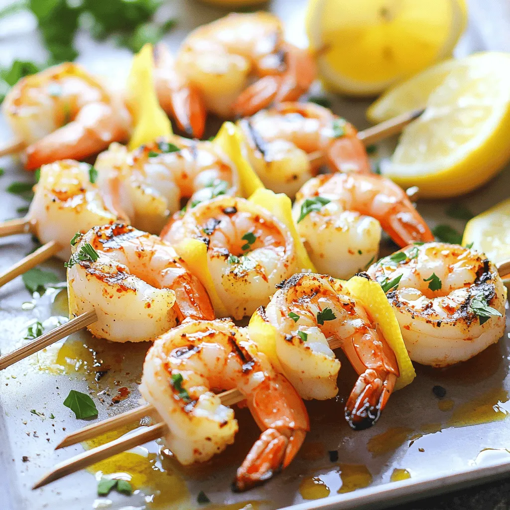 Preheat your grill to medium-high heat. If you use wooden skewers, soak them in water for 30 minutes. This prevents them from burning on the grill. Once ready, thread about four to five marinated shrimp onto each skewer. Make sure they are snug but not too tight. Place the skewers on the hot grill. Cook them for about 2 to 3 minutes on each side. Look for the shrimp to turn opaque and develop grill marks. Be careful not to overcook them. When done, remove the skewers and let them rest for a minute. Garnish with chopped parsley and serve with lemon wedges. Enjoy your meal!