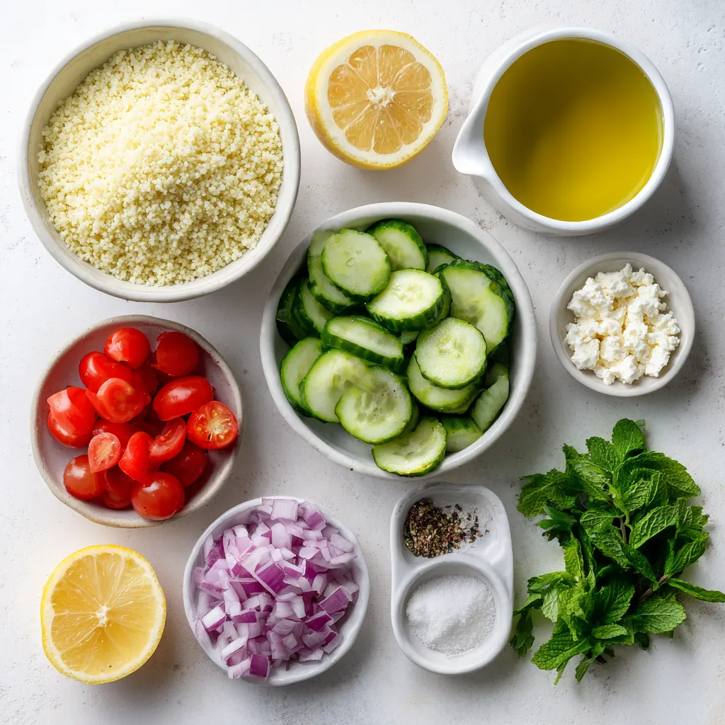 Gather these ingredients to make a delightful Lemon Herb Couscous Salad. Enjoy the fresh and vibrant flavors!