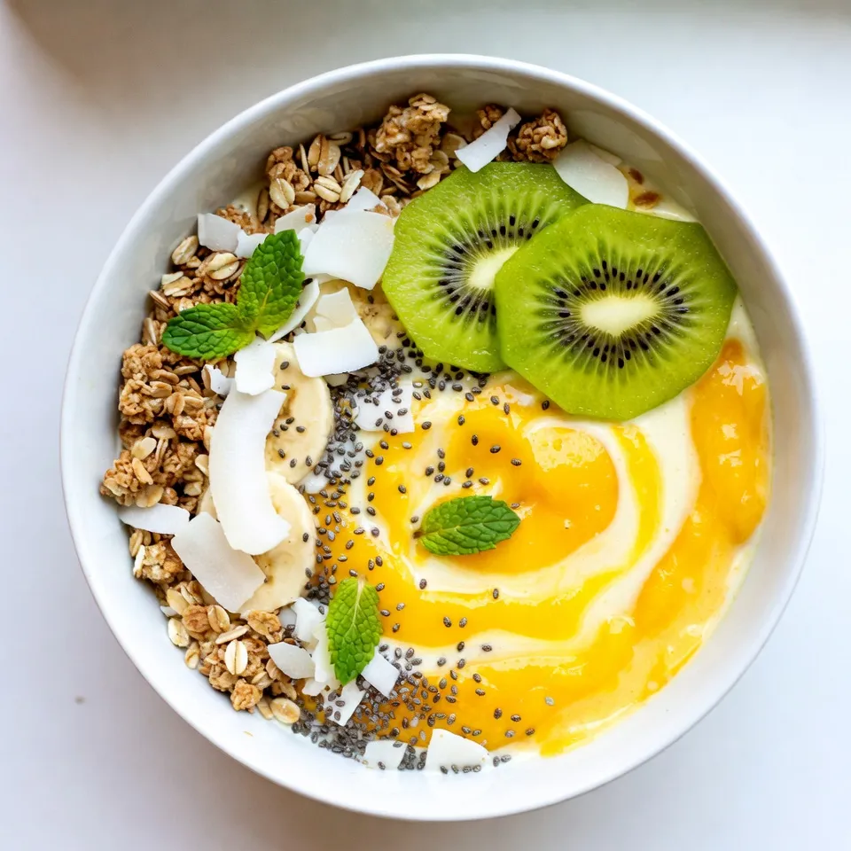 This post shows you how to make a delicious smoothie bowl. Start with ripe mango, banana, coconut yogurt, and coconut milk. Blend until smooth, then pour it into a bowl. Add toppings like kiwi, granola, and chia seeds for extra flavor. Remember to try different fruits and adjust sweetness to fit your taste.