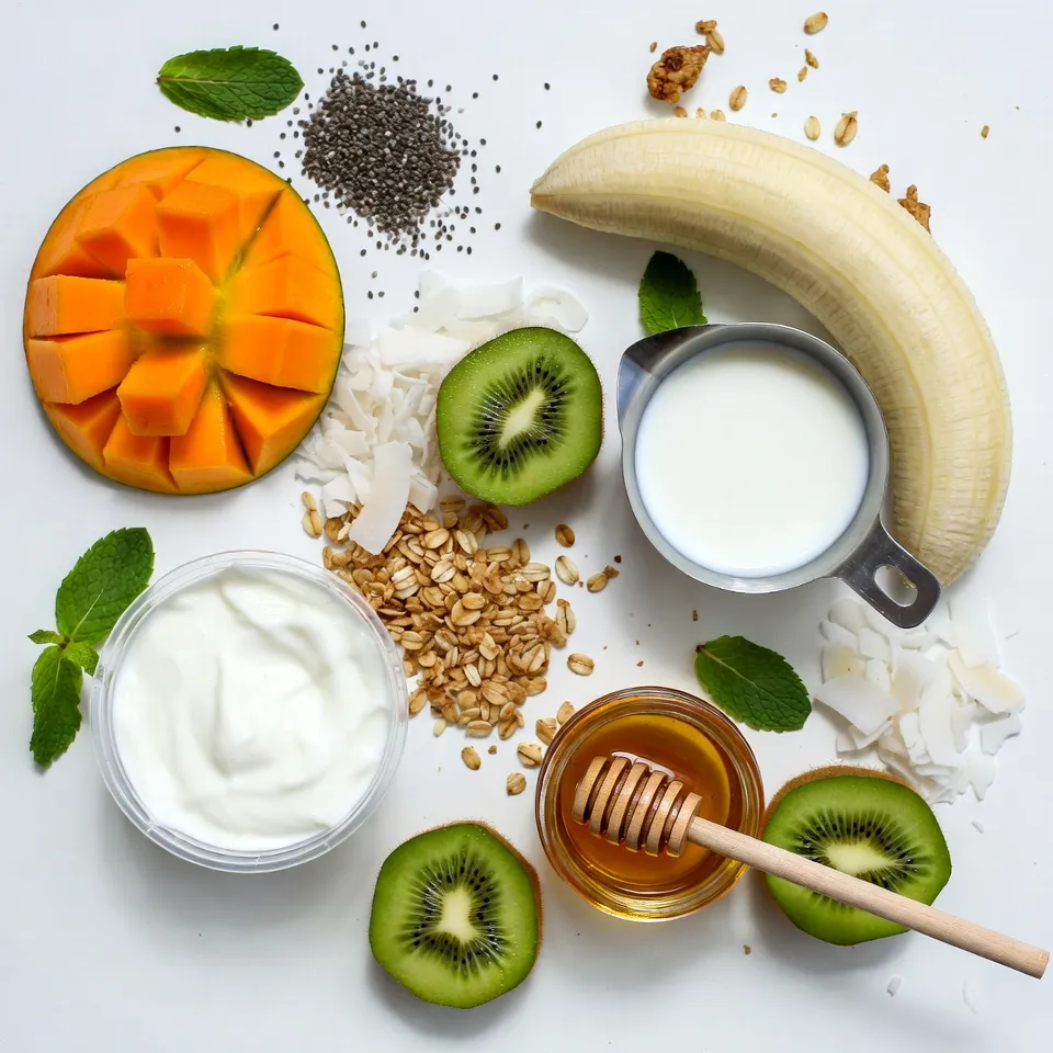 The main ingredients are the stars of your smoothie bowl. Ripe mango brings a sweet tropical taste. Bananas add creaminess and sweetness. Coconut yogurt gives a nice tang and thick texture. Coconut milk makes the bowl smooth and rich.