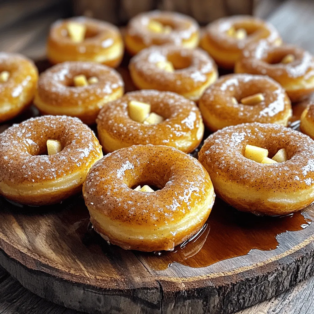 - 1 ½ cups all-purpose flour - 1 cup apple cider - ½ cup granulated sugar - ¼ cup maple syrup - 1 large grated apple To start making these donuts, gather the essential ingredients. The all-purpose flour gives structure, while apple cider adds moisture and flavor. Use granulated sugar for sweetness, and maple syrup for that rich, warm taste. Grating a large apple, like Honeycrisp or Fuji, adds a delightful texture. - 1 teaspoon ground cinnamon - ¼ teaspoon nutmeg - Unsalted butter for richness For extra flavor, consider adding ground cinnamon and nutmeg. These spices elevate the taste and make your kitchen smell amazing. Unsalted butter adds richness, making the donuts even more delicious and moist. - Donut pan - Mixing bowls - Whisk and spatula - Toothpick for testing doneness You will need a donut pan to shape your treats. Mixing bowls help combine the dry and wet ingredients. A whisk and spatula are key for mixing. Lastly, a toothpick is essential for checking if the donuts are baked just right. These ingredients and tools set you up for success in making your maple cinnamon apple donuts. For the full recipe, check out the details above! - Preheat oven to 350°F (175°C). - Grease donut pan with non-stick spray. - Whisk together flour, baking powder, baking soda, cinnamon, nutmeg, and salt. - Combine apple cider, maple syrup, melted butter, egg, and grated apple. - Mix wet and dry ingredients just until combined. - Fill the donut pan and bake for 10-12 minutes. - Cool and coat in cinnamon-sugar mixture. Follow the [Full Recipe] for complete details. Enjoy the sweet taste of autumn! To get light and fluffy donuts, avoid overmixing the batter. When you mix the wet and dry ingredients, do it just until combined. If you stir too much, the donuts can become dense. Proper baking time and temperature also play a big role. Bake at 350°F for 10-12 minutes. Check with a toothpick; it should come out clean. Coating the donuts while they are warm helps the cinnamon-sugar stick better. After you take them out of the oven, let them cool for about five minutes. Then, roll each donut in the cinnamon-sugar mix. This gives them a sweet, crunchy exterior that is hard to resist. For a fun twist, serve the donuts with a drizzle of maple syrup. You can also offer a spiced cream cheese dip on the side. This adds a creamy texture and a new flavor layer. Arrange the donuts on a pretty platter to make them look even more tempting. {{image_2}} You can make these donuts even more fun! Try adding more spices, like ginger or cloves. Different apples can also change the taste. Honeycrisp apples are sweet, while Granny Smith apples add a tart kick. You can also switch up sweeteners. Use honey for a floral note or brown sugar for deeper flavor. Want to make a gluten-free version? You can use almond flour or coconut flour instead of regular flour. Just remember, this may change the texture a bit. If you're vegan, swap the egg for a flax egg. You can also use nut butter in place of butter for creaminess. These donuts taste great with coffee or chai. The warm spices in the drinks match the flavors of the donuts. You can also try serving them with a scoop of vanilla ice cream. It's a fun twist for a special treat. For the full recipe, check out the details above. You should store your maple cinnamon apple donuts in an airtight container. Keep them at room temperature. They stay fresh for up to 2 days. To enjoy these tasty treats later, freeze them. Wrap each donut tightly in plastic wrap. Place them in a freezer bag. You can freeze them for up to 3 months. When you want to eat them, reheat in the oven. This keeps them soft and warm. If you have leftovers, simply reheat them. Use the microwave for quick warming. For a crispier bite, use the oven. This way, they taste just as good as when they were fresh. Enjoy your delicious donuts warm for a great treat! Yes, you can prepare the batter and store it in the fridge. This makes it easy to bake fresh donuts when you want them. Just remember to mix the batter well before using it. Overmixing the batter can lead to denser donuts. Mix just until you see no dry flour. This keeps the donuts light and fluffy. Check local bakeries or specialty stores for these tasty treats. You can also look for online shops that sell gourmet donuts. Yes, you can use pears or peaches for a variation on the flavor. Both fruits add a nice sweetness and moisture. Feel free to experiment! Maple Cinnamon Apple Donuts are a delightful treat, combining warm spices and fresh apples. You learned the essential and optional ingredients needed to create these donuts. The step-by-step guide made baking simple, and tips will help you achieve the best texture. You can even try fun variations, whether dietary choices or different fruits. Store them properly to enjoy later. These donuts are sure to bring joy and flavor to your kitchen. Get ready to bake and enjoy every bite!