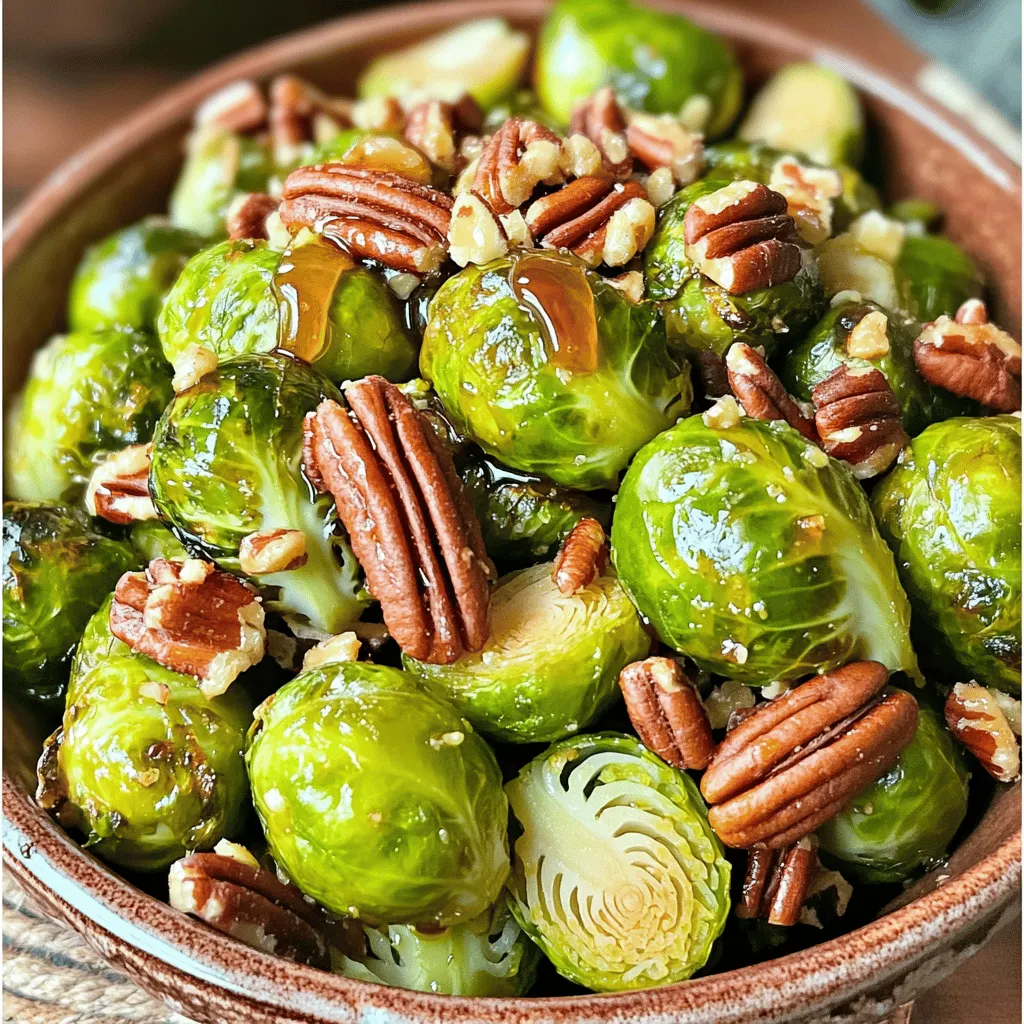 ![For this tasty dish, you need: - 1 pound Brussels sprouts, trimmed and halved - 3 tablespoons pure maple syrup - 2 tablespoons olive oil - 1 tablespoon balsamic vinegar - 1 teaspoon garlic powder - Salt and pepper to taste These main ingredients work together to create a sweet and savory flavor. The maple syrup adds sweetness, while the balsamic vinegar gives it a nice tang. The garlic powder enhances the taste, making each bite delicious. To boost the flavor even more, consider adding: - 1/2 cup pecans, roughly chopped - 1/4 teaspoon cayenne pepper (optional for a spicy kick) Pecans add a nice crunch, and cayenne pepper can bring some heat if you like it spicy. You can adjust these to fit your taste. This dish is not only tasty but also packs some nutrition. Each serving has: - Calories: Around 180 - Protein: 3 grams - Fat: 12 grams - Carbohydrates: 18 grams - Fiber: 4 grams Brussels sprouts are high in vitamins and low in calories, making them a smart choice. For the full recipe, check out the [Full Recipe]. Start by rinsing the Brussels sprouts under cold water. This step removes dirt and any residue. Trim the ends and slice them in half. This helps them cook evenly. Make sure they are about the same size for even roasting. Place your halved sprouts in a large bowl. In the same bowl, add the following ingredients: - 3 tablespoons pure maple syrup - 2 tablespoons olive oil - 1 tablespoon balsamic vinegar - 1 teaspoon garlic powder - Salt and pepper to taste - 1/4 teaspoon cayenne pepper (optional) Mix these well until the Brussels sprouts are coated. It's important to ensure every sprout gets that sweet glaze. If you like heat, add cayenne, but it’s not required. Preheat your oven to 400°F (200°C). Line a baking sheet with parchment paper. Spread the glazed Brussels sprouts evenly on the sheet. Make sure they are not crowded. Roast them for 20 minutes. After that, stir in the roughly chopped pecans. Return the baking sheet to the oven. Roast for another 10-15 minutes. Look for a nice caramelized color. When they are tender, remove them from the oven. Let them cool for a moment before serving. For the perfect touch, drizzle any leftover glaze from the baking sheet on top. Enjoy your meal! For the full recipe, check out the complete guide. To roast Brussels sprouts well, follow a few simple steps. First, cut them in half. This helps them cook evenly. Next, make sure to coat them well with oil and glaze. This keeps them moist and adds flavor. Use a large bowl for mixing. This gives you space to toss them without mess. Finally, spread the sprouts out on the baking sheet without crowding. This ensures they roast instead of steam. You can tweak the maple glaze to fit your taste. Want a touch of spice? Add a little cayenne pepper, just like in the recipe. For a tangy twist, mix in more balsamic vinegar. You can even swap maple syrup for honey or agave syrup if you prefer. Experiment with different spices, too. Try adding cinnamon or nutmeg for a warm flavor. Maple glazed Brussels sprouts make a great side dish. They pair well with roasted meats like chicken or pork. You could also serve them with grains like quinoa or rice. For a colorful plate, add some roasted carrots or sweet potatoes. This adds more flavor and nutrients. If you want a crunch, sprinkle some extra pecans on top before serving. For the full recipe, check out the details above. {{image_2}} You can easily turn your maple glazed Brussels sprouts into a full meal. Add cooked chicken, bacon, or tofu for protein. Just toss these in with the sprouts before roasting. This adds flavor and makes your dish more filling. Maple syrup is sweet and rich, but you can try other sweeteners too. Honey or agave syrup can work well. They will change the flavor slightly. You might find you like one better than the other. Just keep the same amount when you swap them out. Change up your Brussels sprouts for different holidays. For Thanksgiving, add cranberries for a festive touch. In winter, try adding roasted chestnuts for warmth. Each season brings unique flavors, so have fun experimenting! To keep your leftover Brussels sprouts fresh, place them in an airtight container. Make sure the container is sealed well. Store them in the fridge. They will stay good for about 3 to 4 days. If you notice any moisture inside the container, use a paper towel to absorb it. This helps prevent sogginess. When you're ready to eat your leftovers, reheat them gently. I recommend using the oven for the best taste. Preheat your oven to 350°F (175°C). Spread the Brussels sprouts on a baking sheet in a single layer. Heat them for about 10 minutes or until they are warm. This method keeps them crispy and tasty. You can also use a microwave if you're short on time, but the texture may not be as good. If you want to save your Brussels sprouts for later, freezing is a great option. First, cool them completely after cooking. Then, spread them out on a baking sheet and freeze them for about 2 hours. This prevents them from sticking together. Once frozen, transfer the sprouts to a freezer-safe bag or container. They can last for up to 3 months in the freezer. When you are ready to eat them, thaw them in the fridge overnight before reheating. Enjoy your maple glazed Brussels sprouts anytime! Yes, you can use frozen Brussels sprouts. Just thaw them and pat them dry. This helps to keep them from getting mushy. The flavor will still be good, but fresh sprouts offer a better texture. If you use frozen ones, adjust the cooking time. Cook them a bit longer to ensure they are tender and caramelized. You can swap out ingredients easily. Here are some ideas: - Use honey instead of maple syrup for sweetness. - Swap olive oil with avocado oil for a higher smoke point. - Use apple cider vinegar instead of balsamic vinegar for a different taste. - If you don’t have garlic powder, fresh minced garlic works great too. - Pecans can be changed to walnuts or almonds if desired. This re